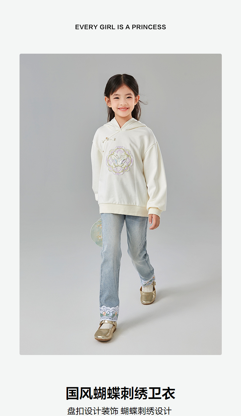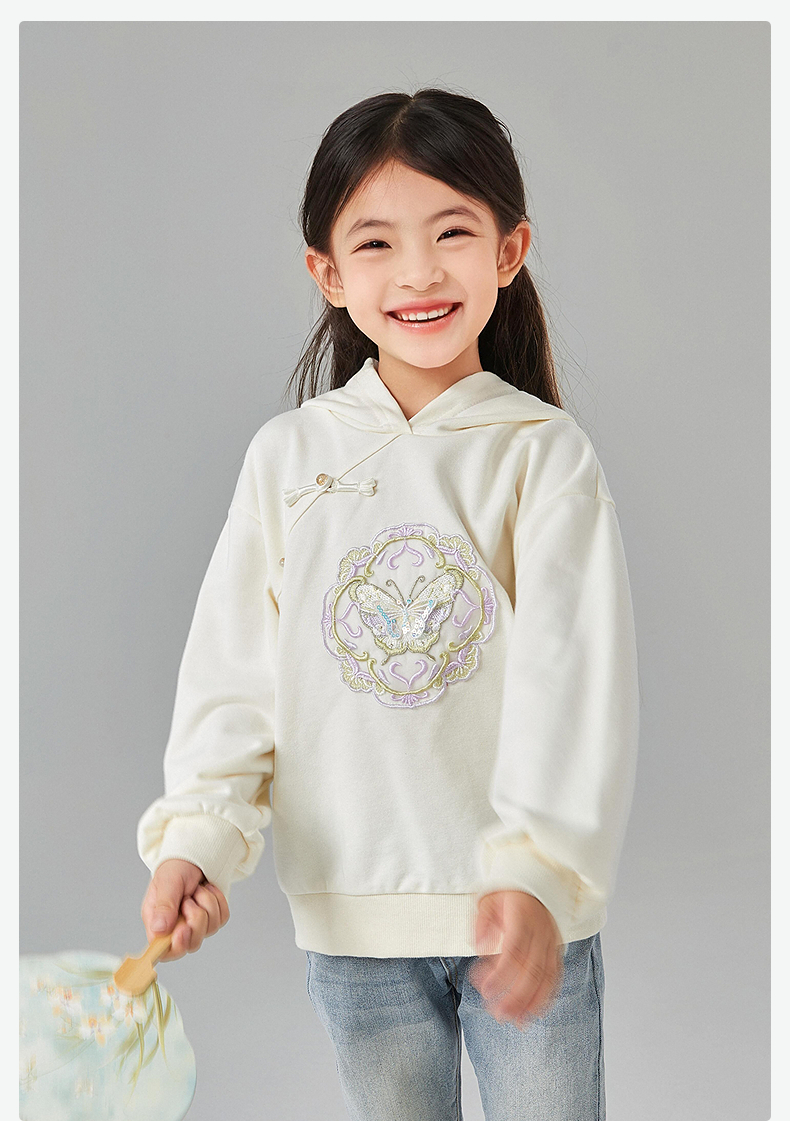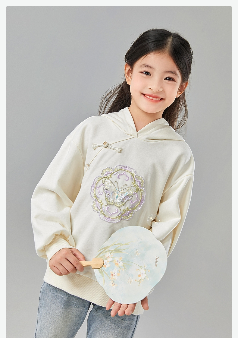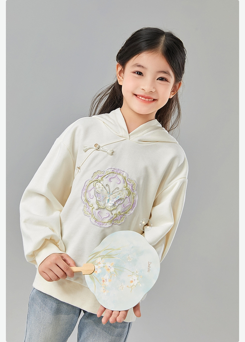 笛莎Deesha 童装女童卫衣2025春新款国风蝴蝶刺绣卫衣