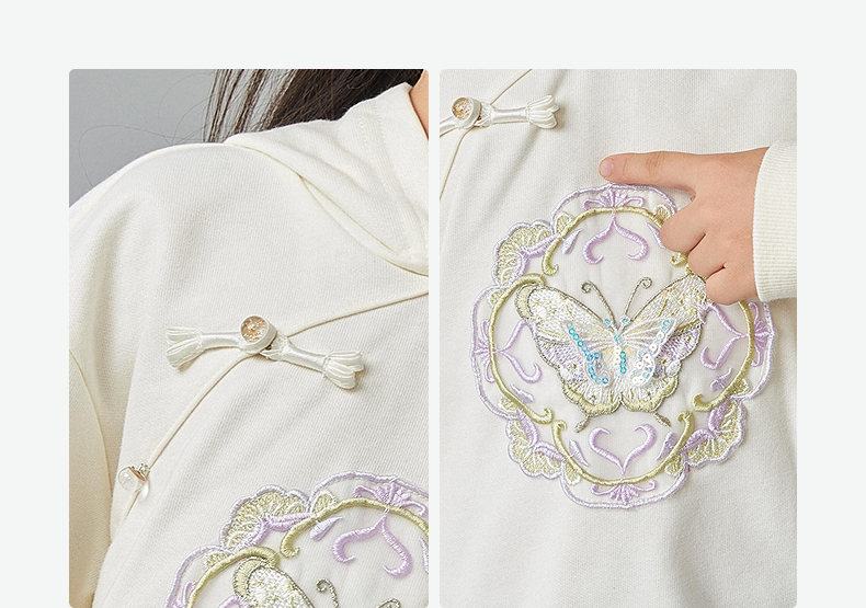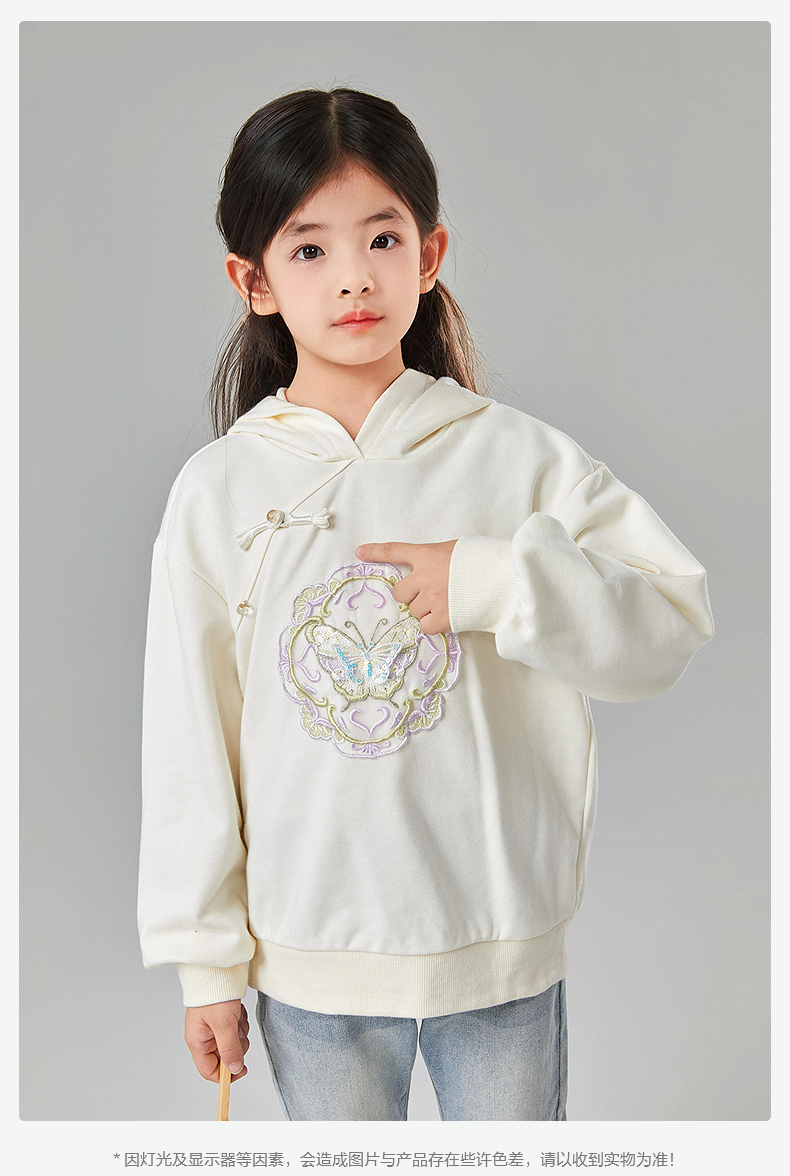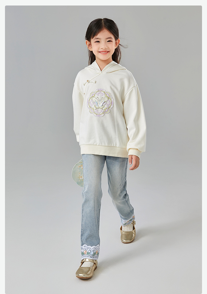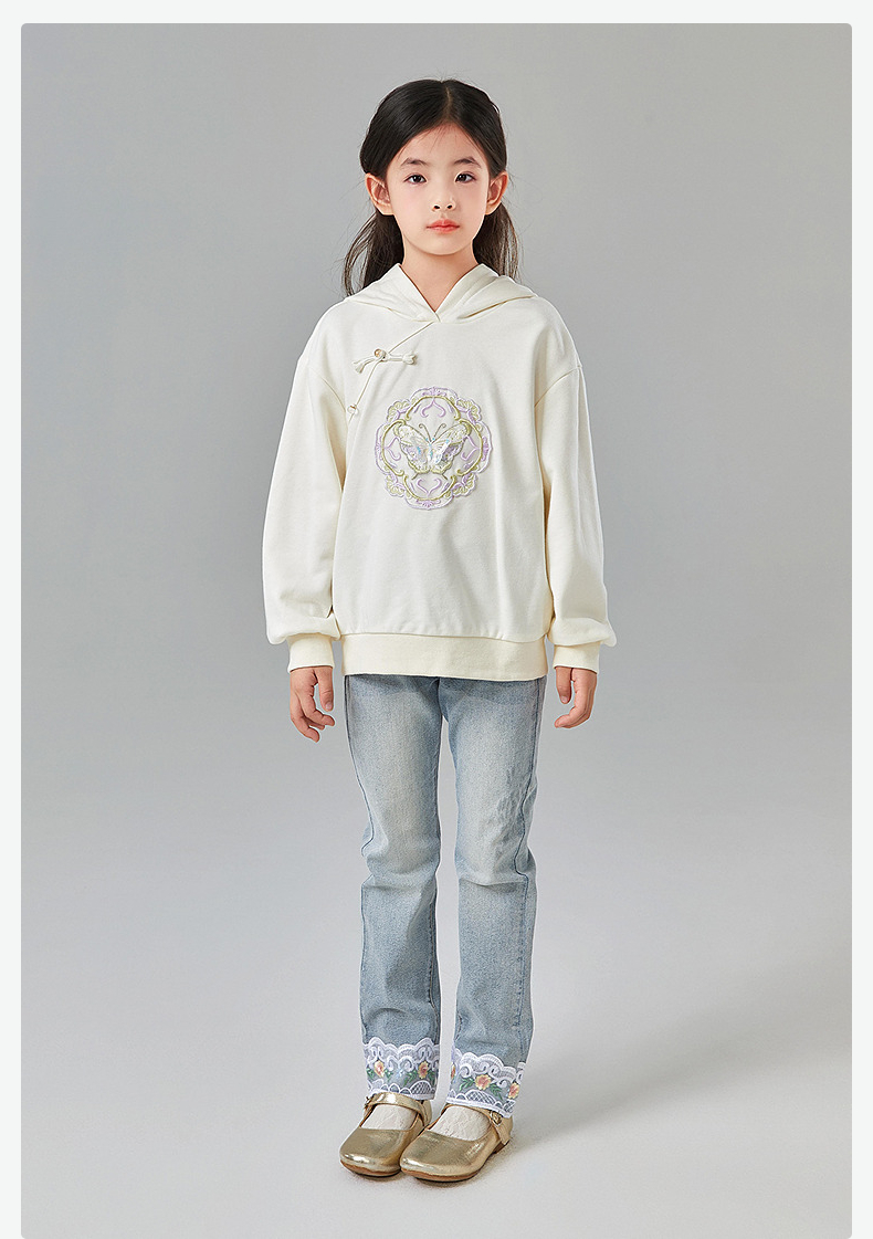 笛莎Deesha 童装女童卫衣2025春新款国风蝴蝶刺绣卫衣