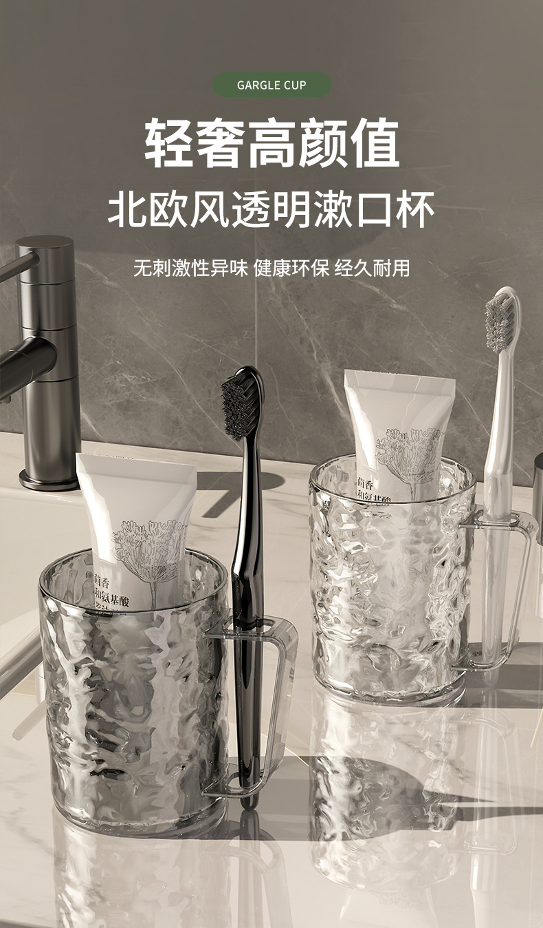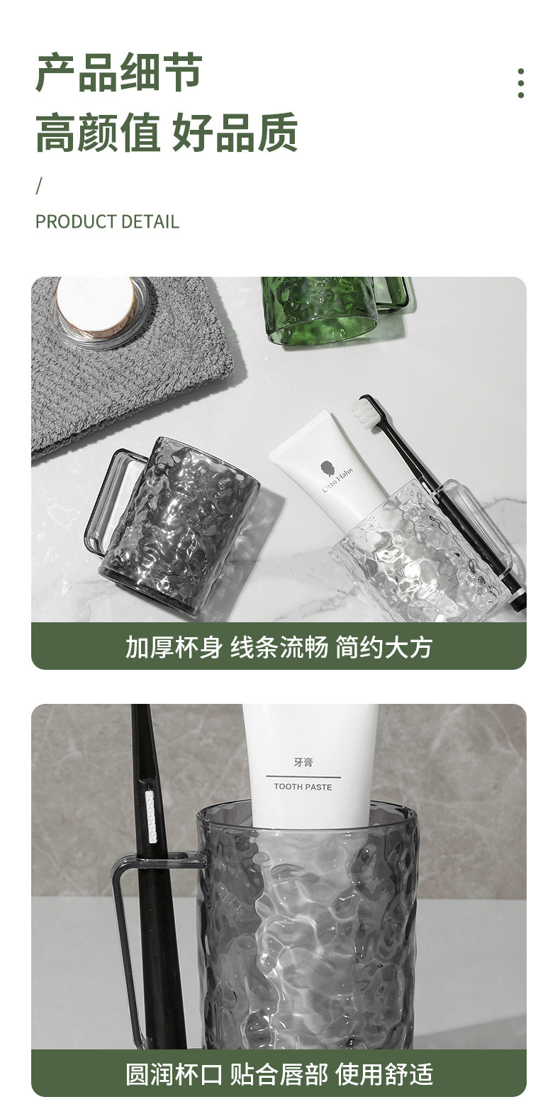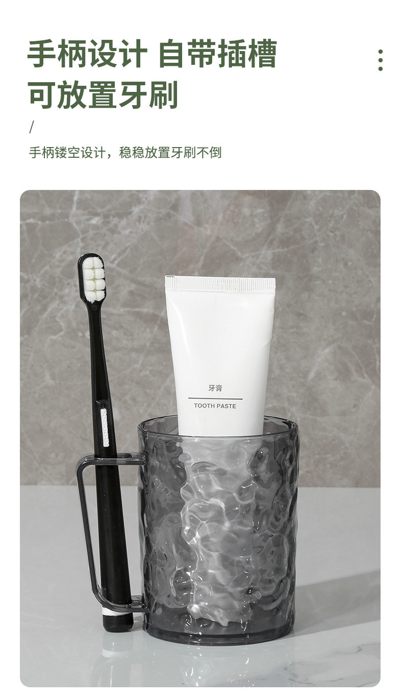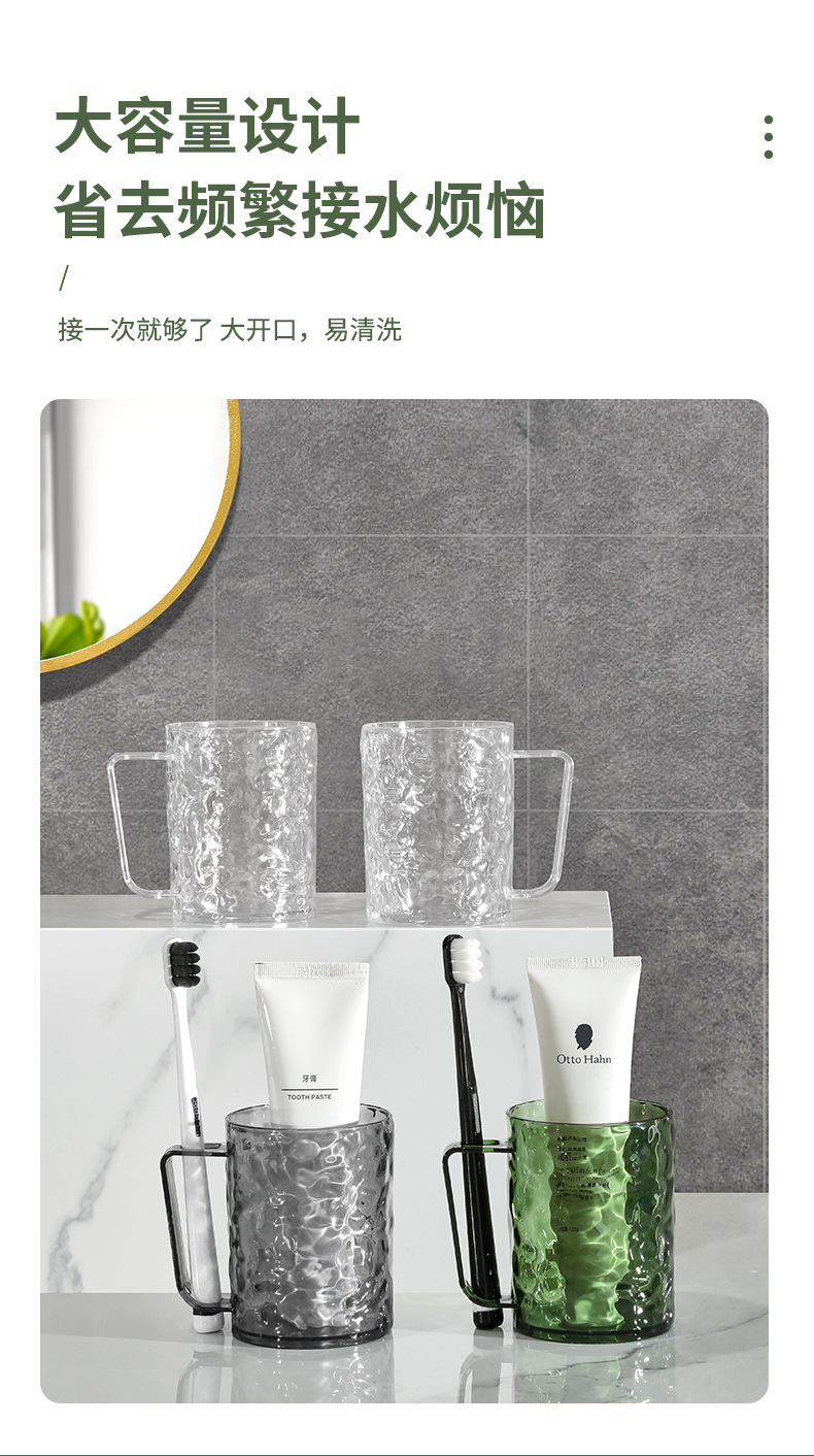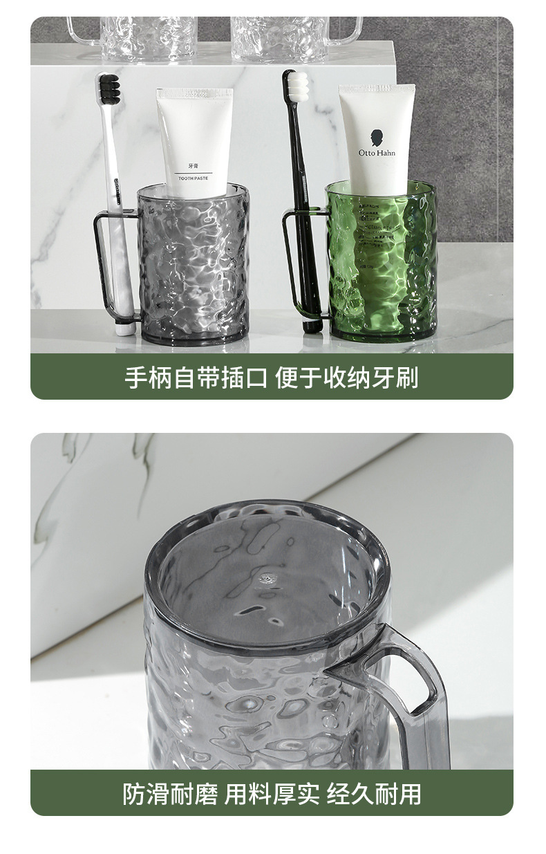 【冰川纹 高颜值塑料杯子带把手】学生宿舍牙刷杯 家用透明漱口杯 情侣杯