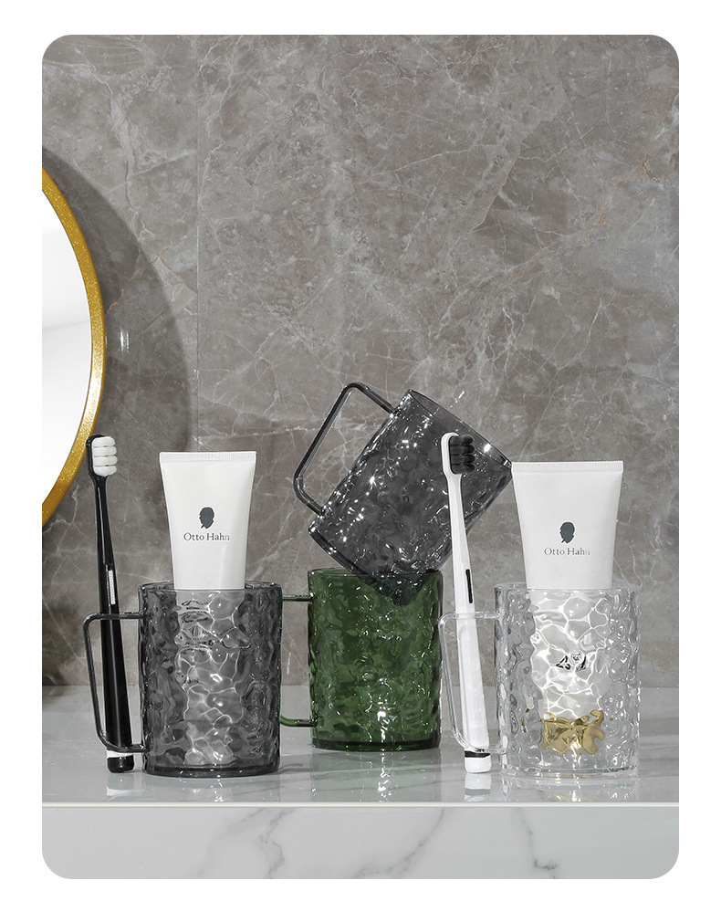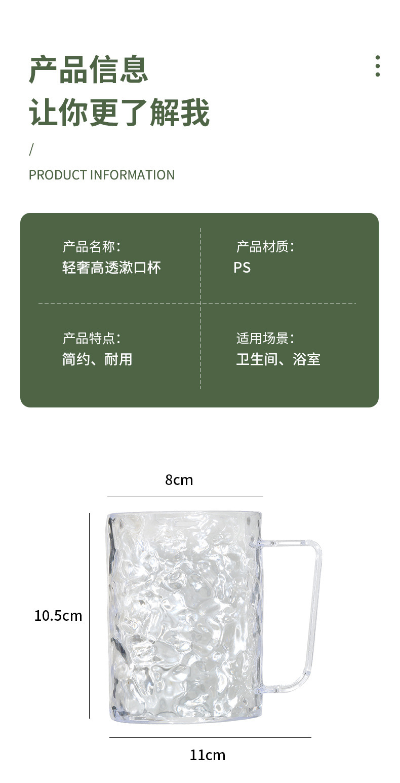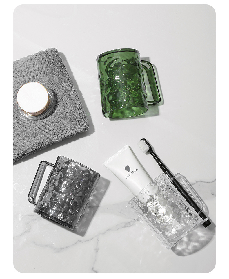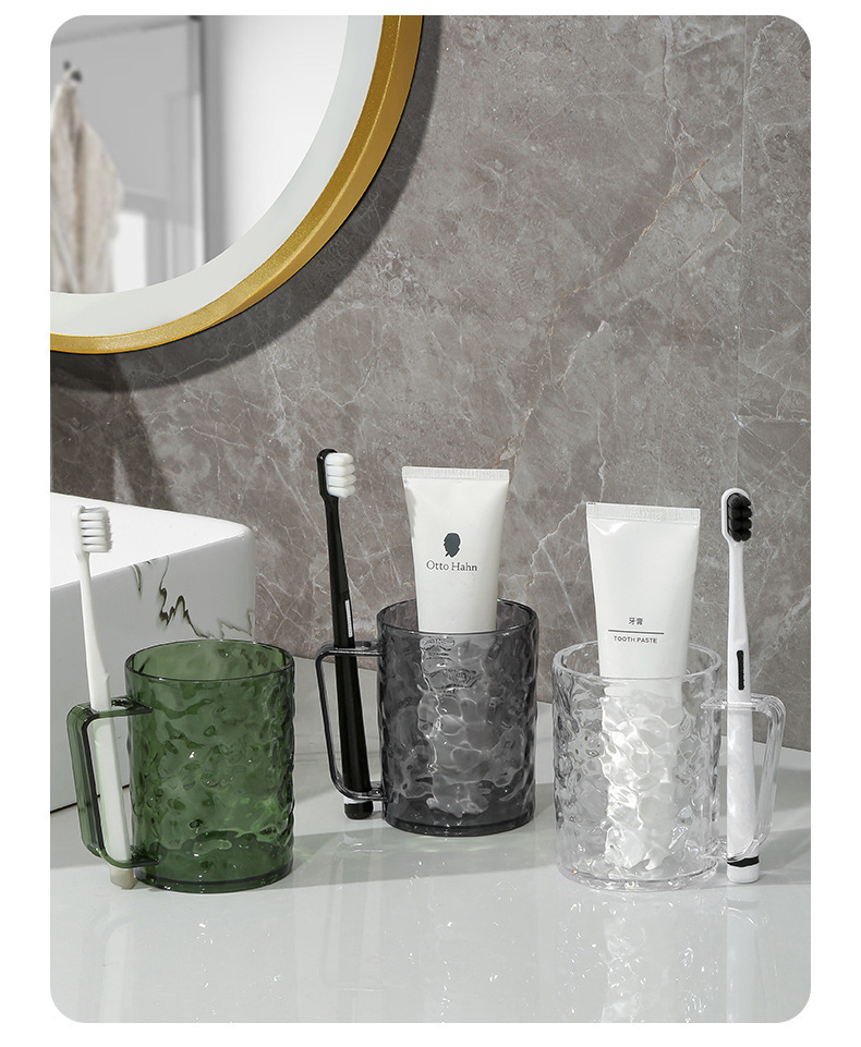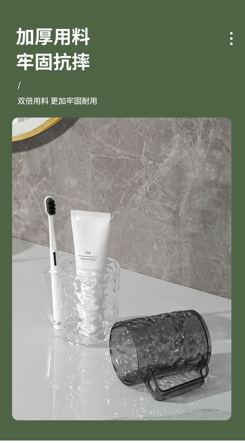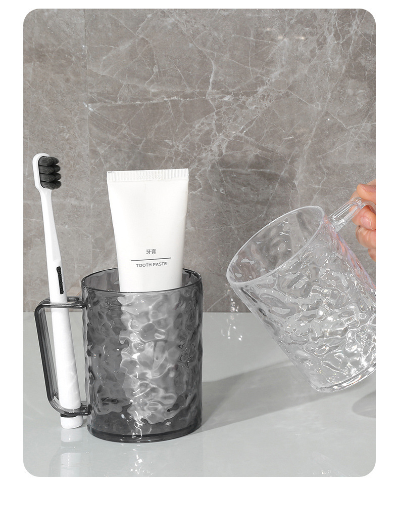 【冰川纹 高颜值塑料杯子带把手】学生宿舍牙刷杯 家用透明漱口杯 情侣杯