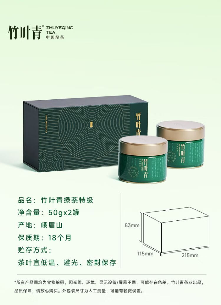 竹叶青特级绿茶两罐装礼盒100g