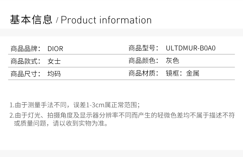 DIOR 女士灰色眼罩式镜框飞行员太阳镜
