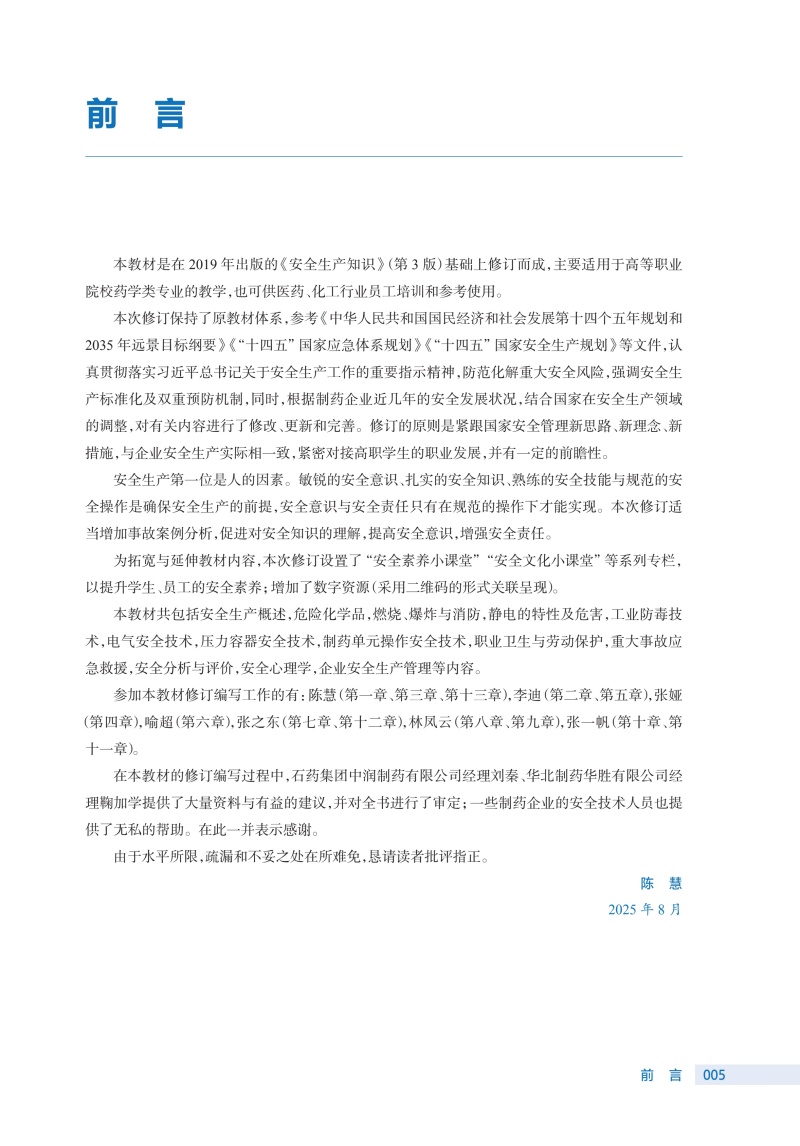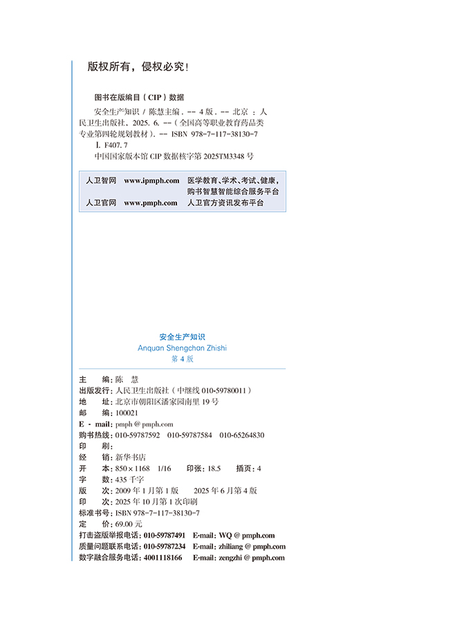 安全生产知识 第4四版 十四五规划教材 全国高等职业教育药品类专业第四轮规划教材 陈慧 主编 9787117381307 人民卫生出版社