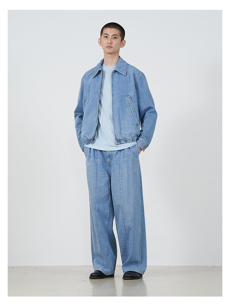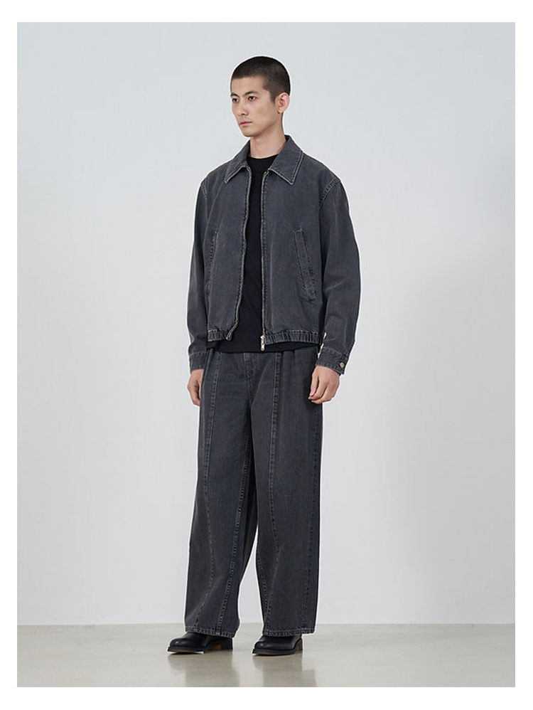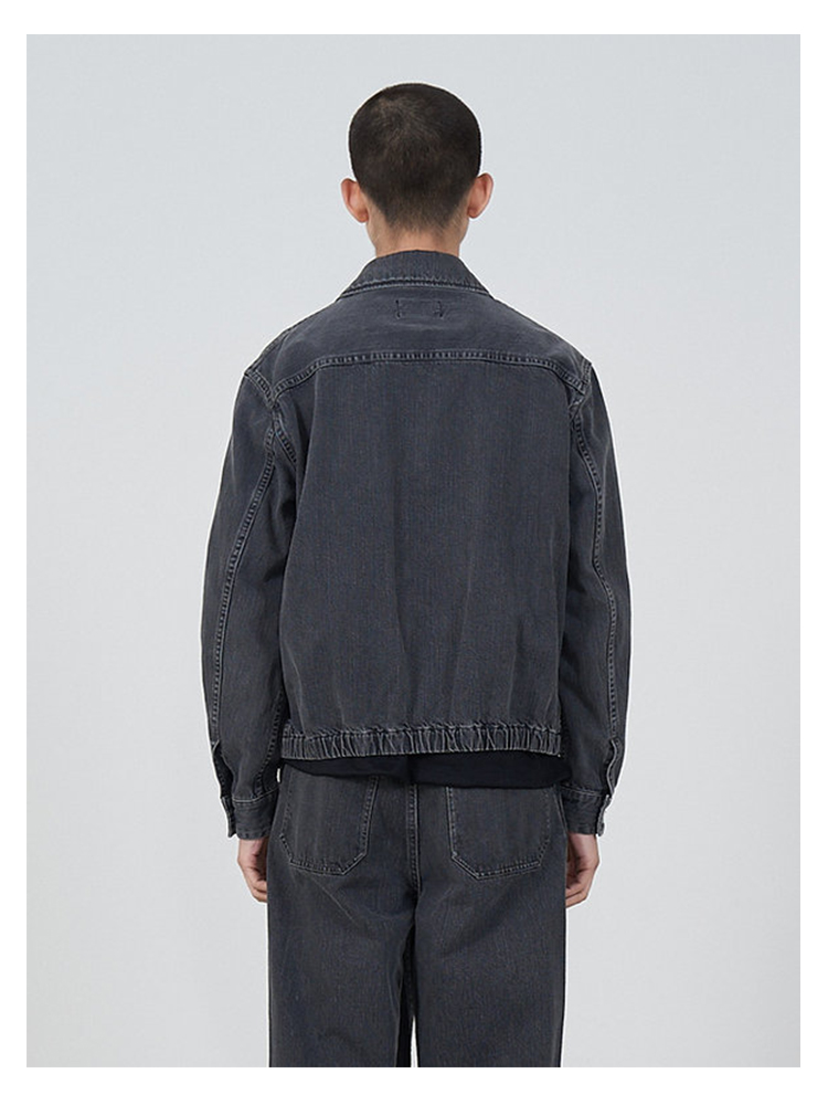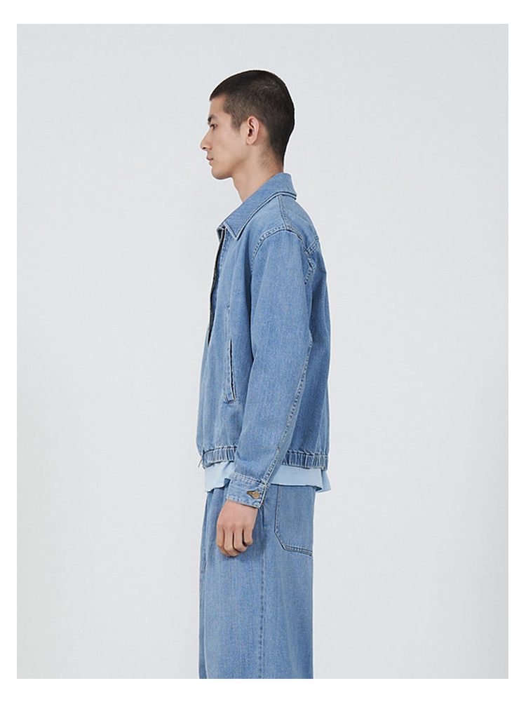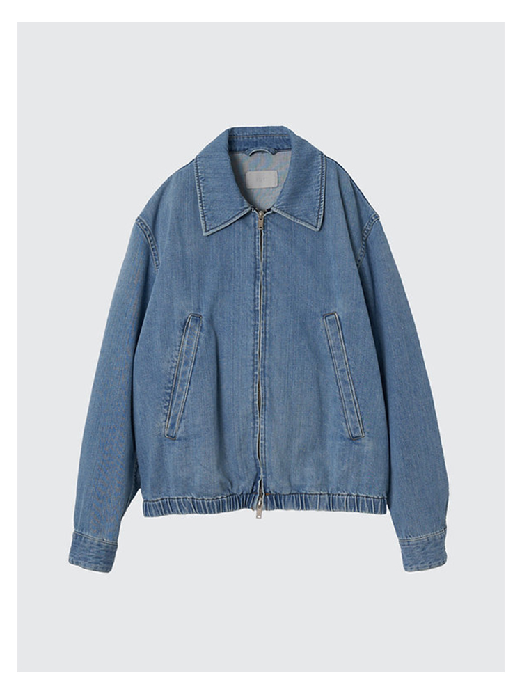 YOKE BLEACHED DENIM FRONT ZIP BLOUSON 复古石洗拉链牛仔夹克