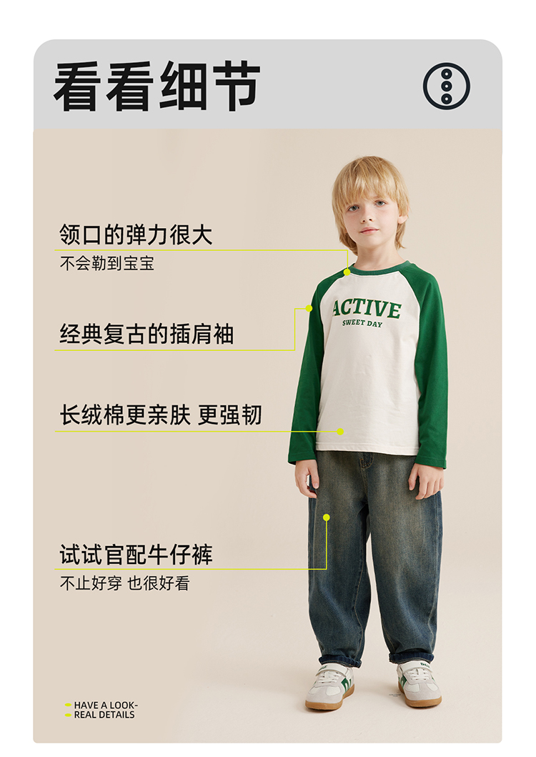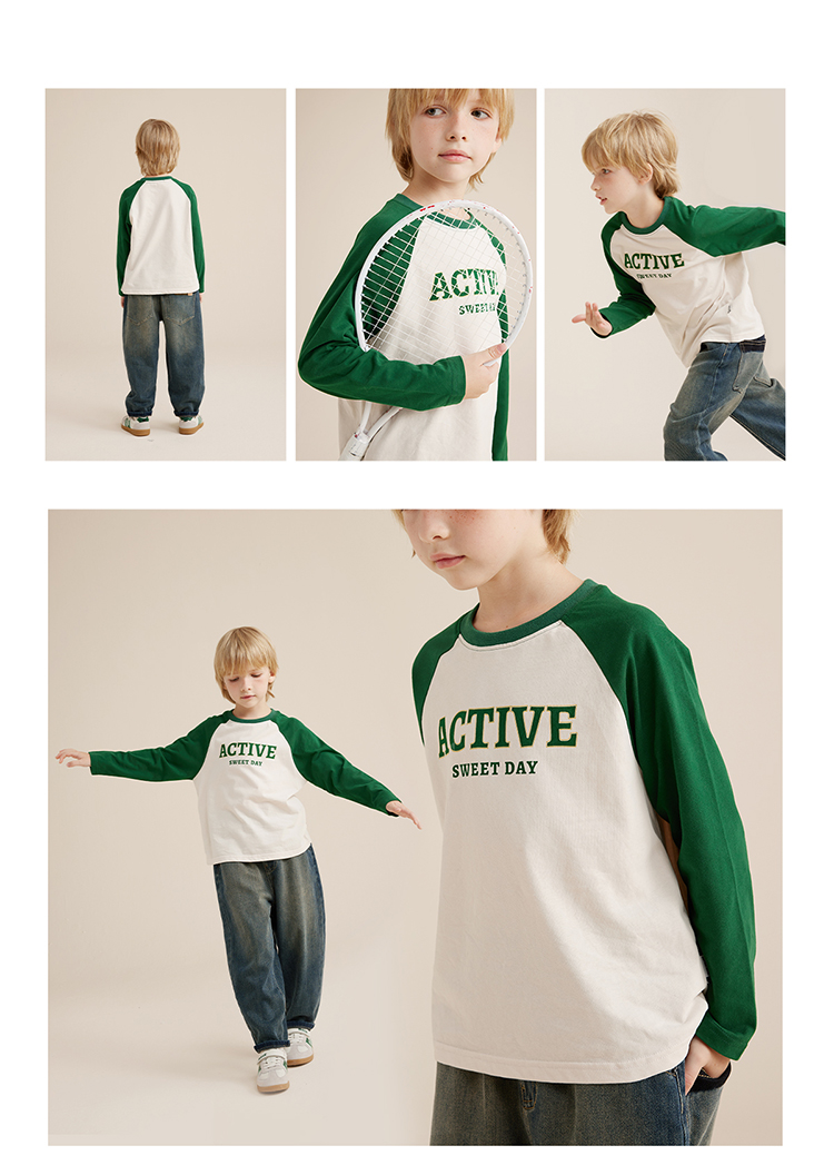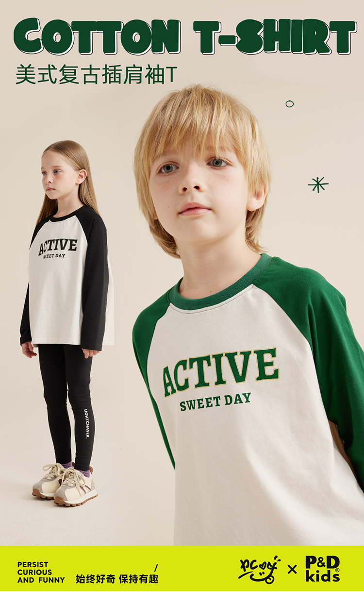 【秋上新】【美式复古风】儿童美式复古插肩袖T恤PQTX2316