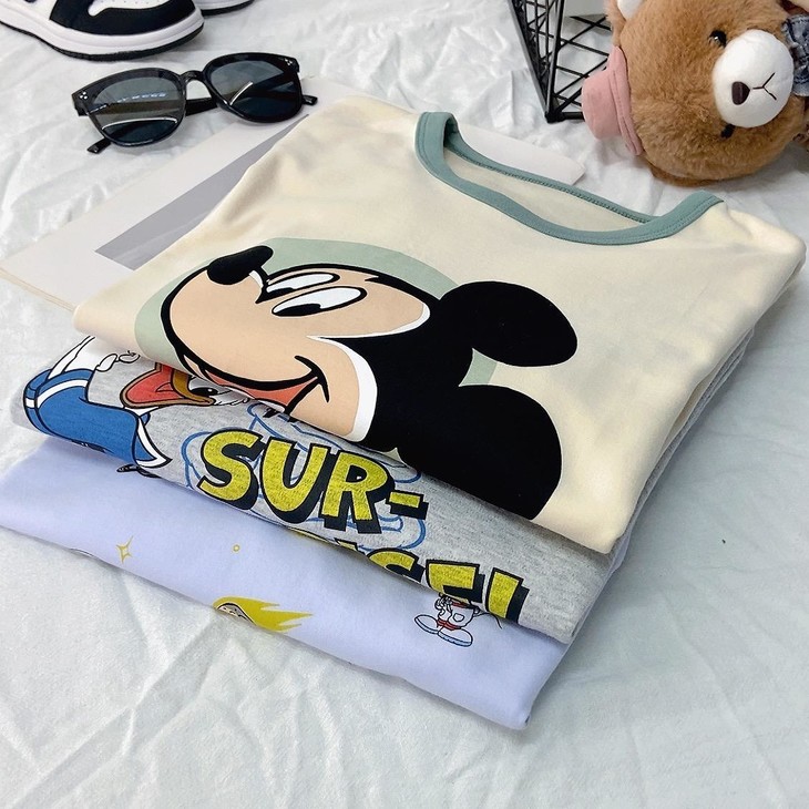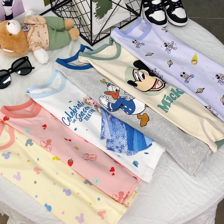 尺码表🌟 男宝:方格米奇、太空米奇、快乐唐老鸭 女宝:彩色米妮、缤纷米妮、冰雪艾莎 尺码:100-160码 🔥📣 快来给宝贝抢!颜色都超级小清新,舒服又好看!