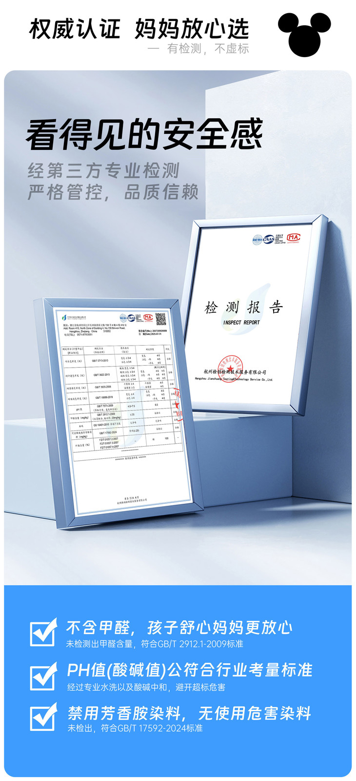 专业机关检测严格把关 ✅A类0甲醛,环保印染 呵护宝宝健康~