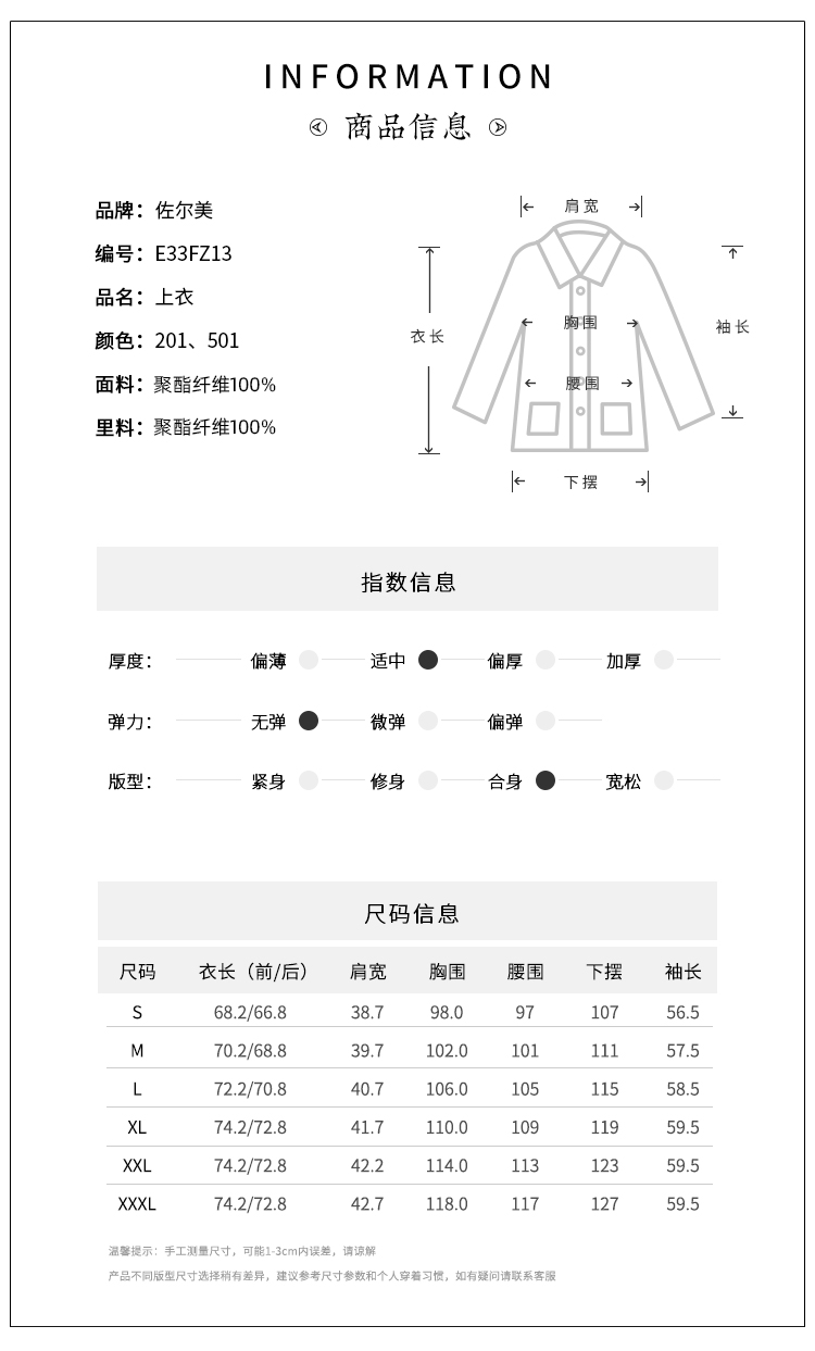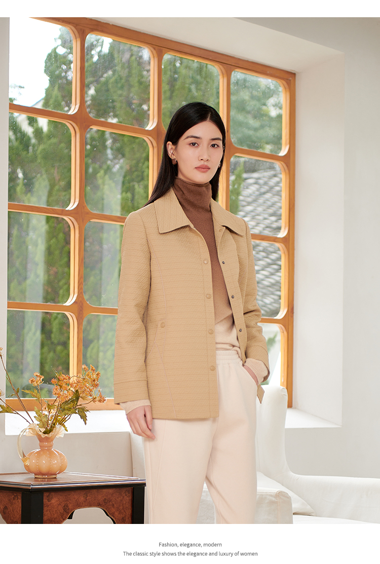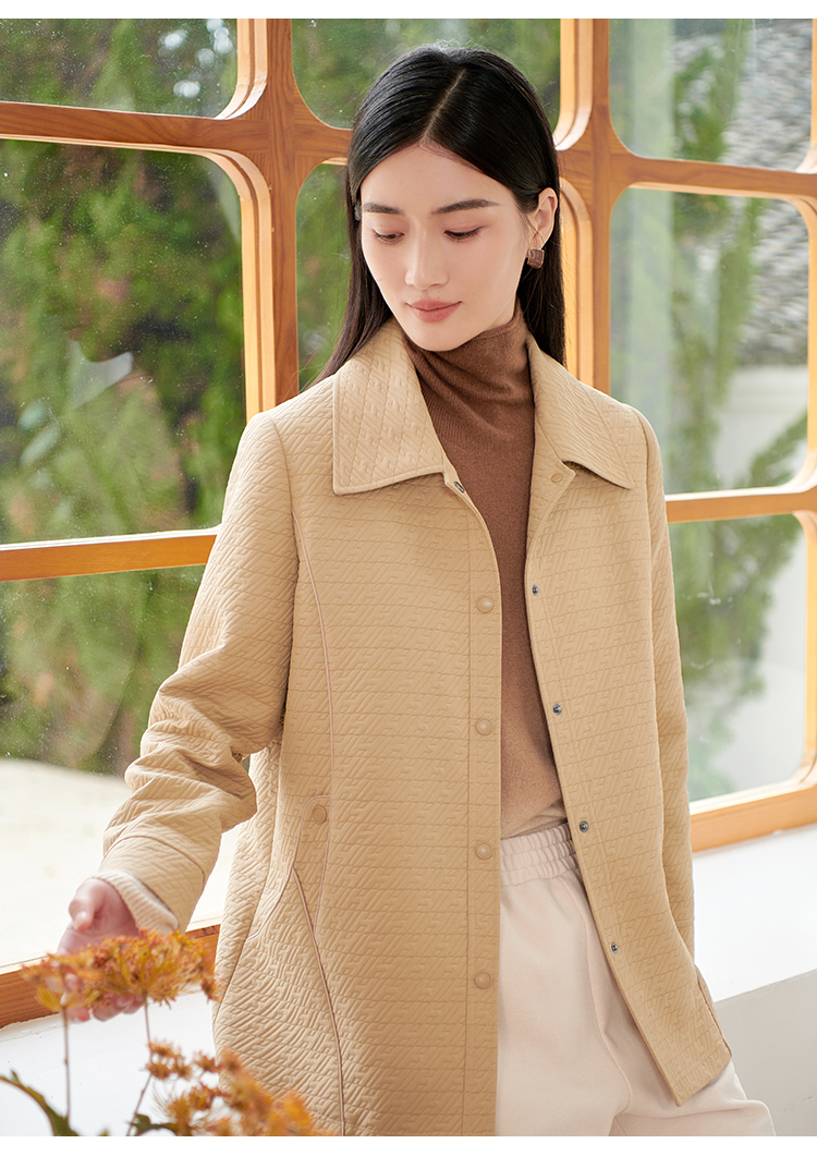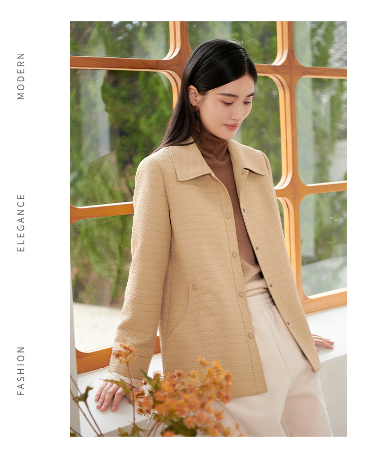 佐尔美新品秋冬新品薄纯色简约时尚妈妈装女外套E73FZ09