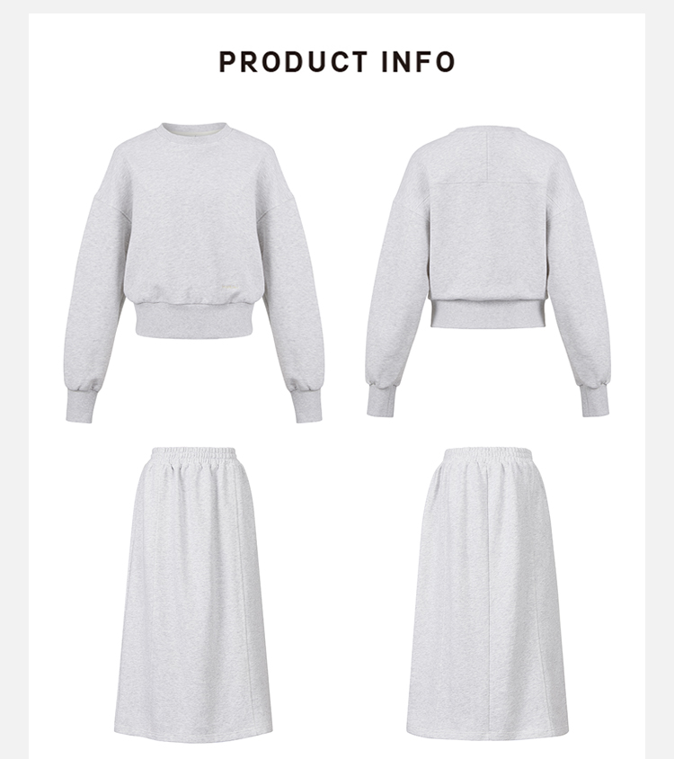 HIDEMI 刺绣logo系列水洗高密棉质短款卫衣三件套 卫衣/长裤/半裙