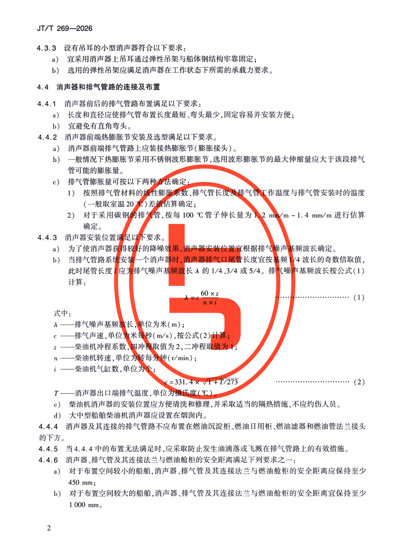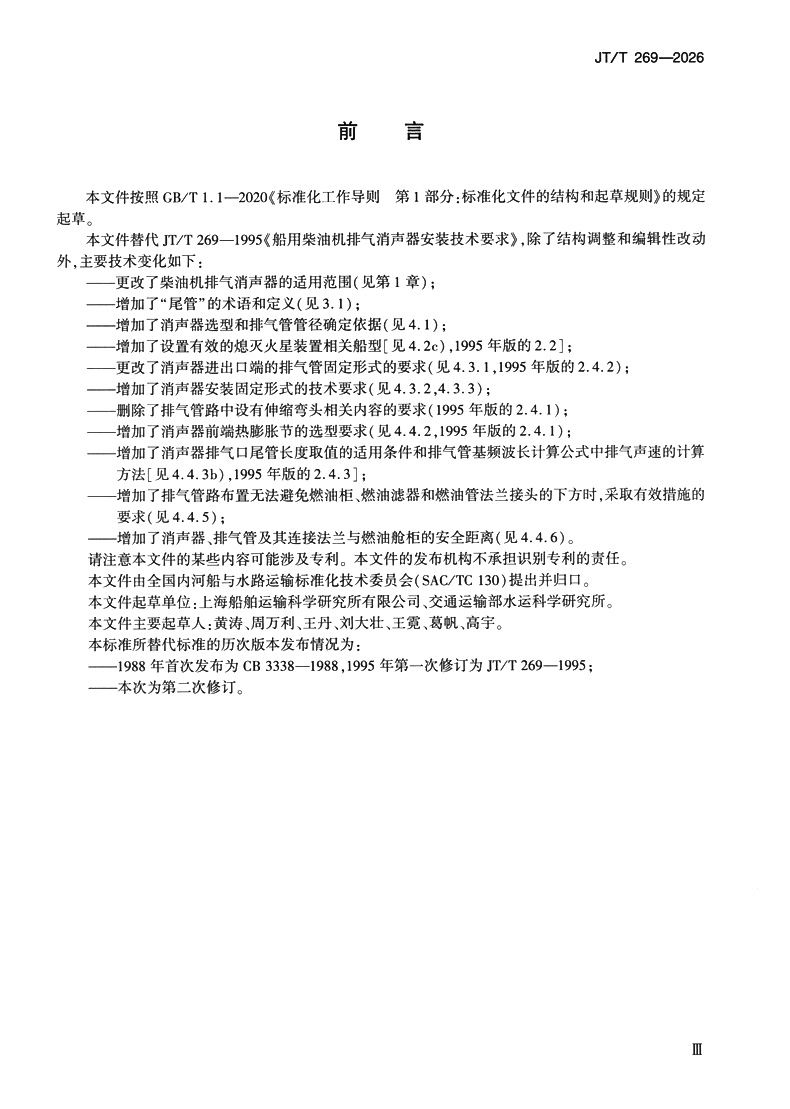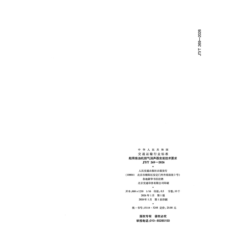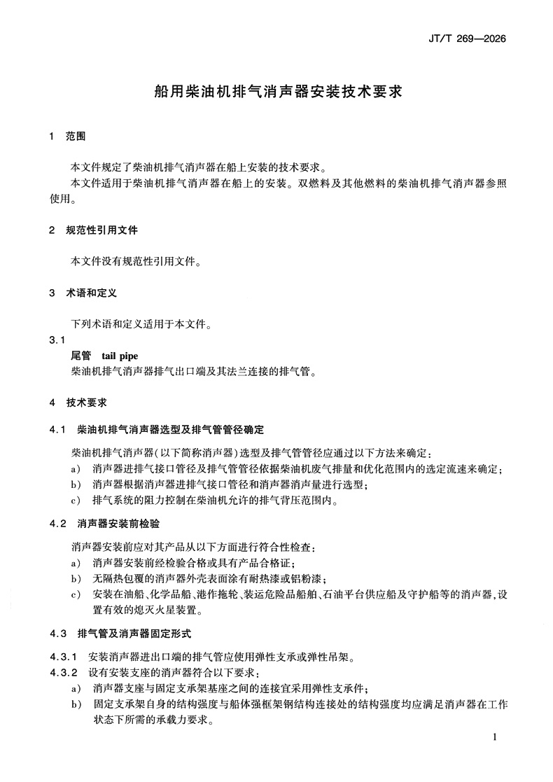 书名:船用柴油机排气消声器安装技术要求(JT/T 269—2026)