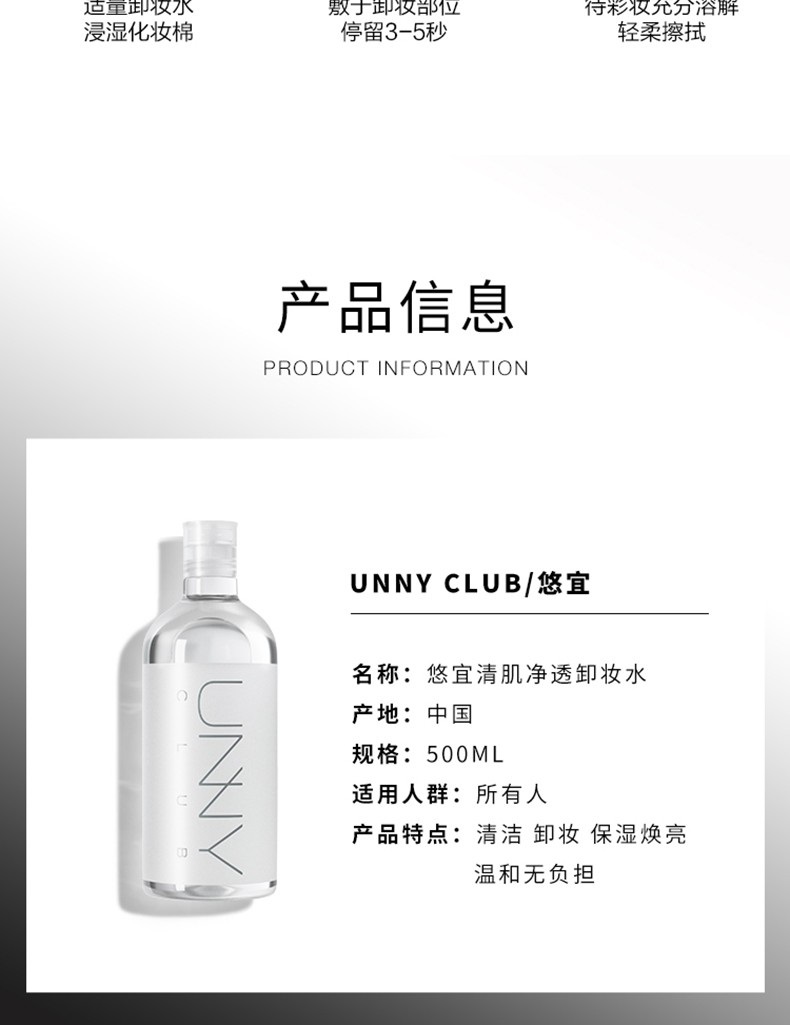 【一般贸易】韩国悠宜UNNY清肌净透卸妆水500ml