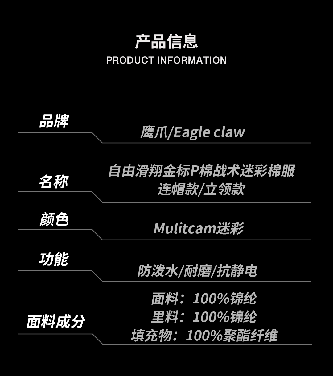 鹰爪自由滑翔金标P棉战术棉服-原品MC迷彩版