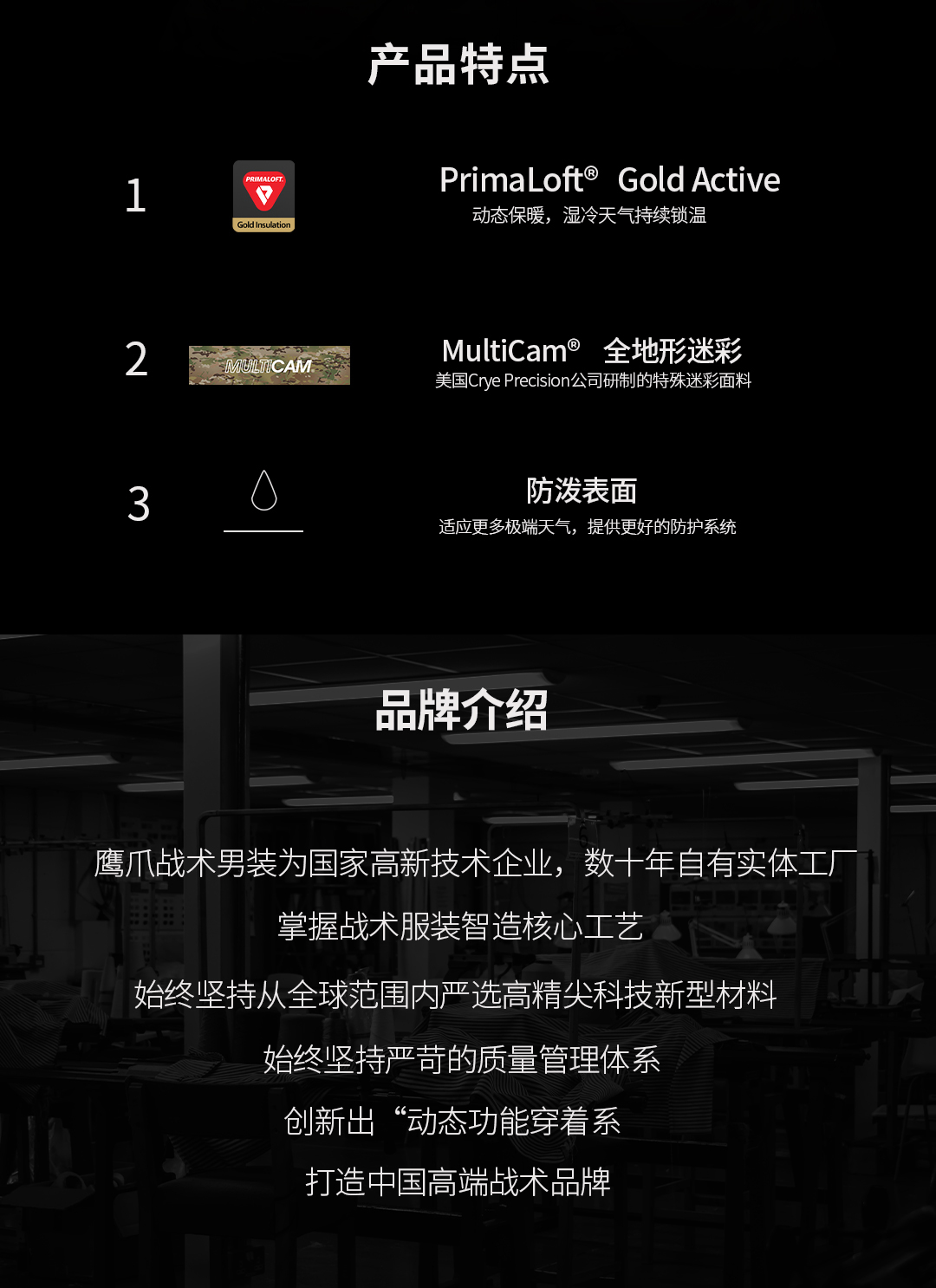 鹰爪,中国功能男装创领品牌,致力于服务中国3亿新中产阶级,着力打造全场景穿着体验创新平台,三十年产业深耕的积淀,以用户的痛点为己任,开创兼具军品与户外装备的功能动态穿着系统。