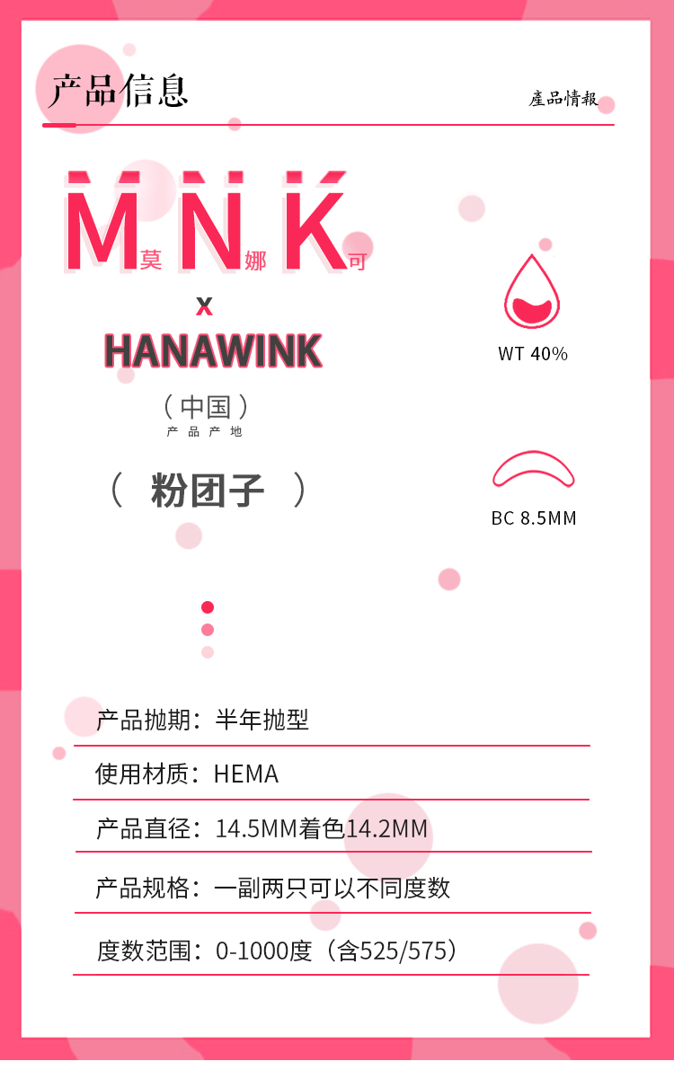 Hanawink 半年抛 粉团子 直径14.5mm着色14.2mm