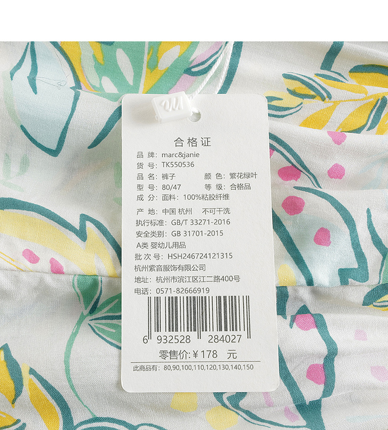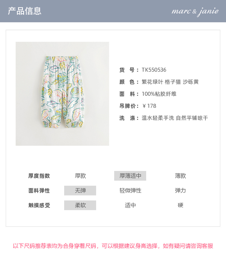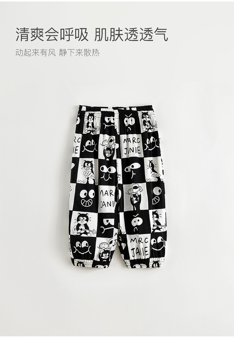 马克珍妮男女童垂感透气防蚊裤印花束脚裤儿童裤子宝宝夏装550536