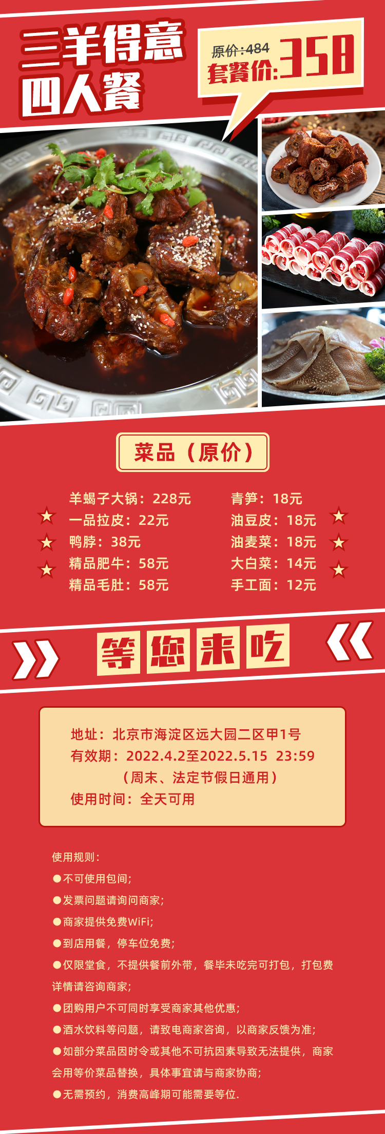 【三只羊】三羊得意358四人餐