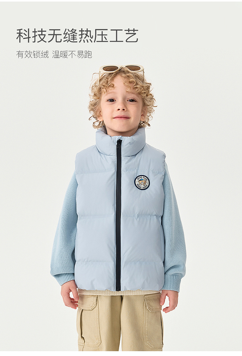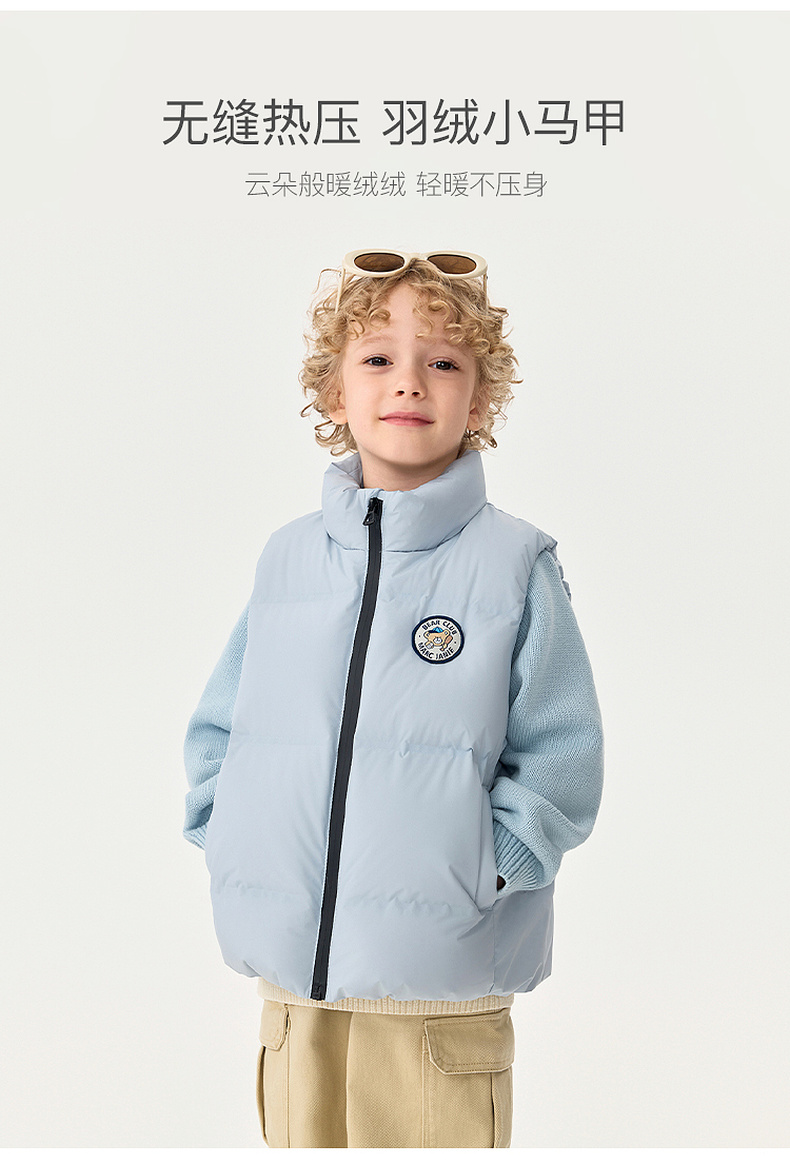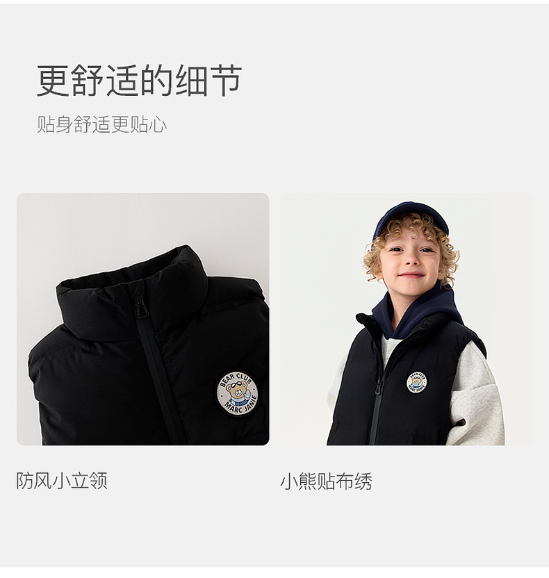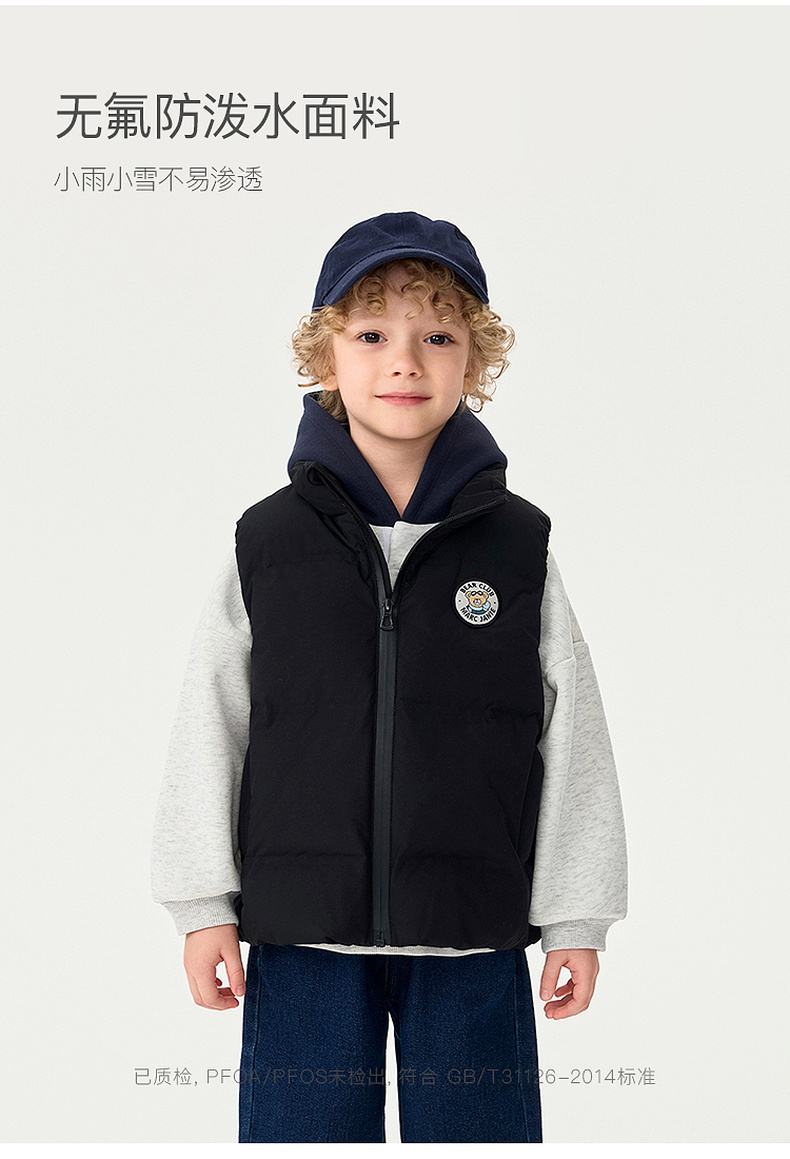 【无氟防泼水】马克珍妮男童无缝保暖羽绒小马甲2025年秋冬新款551678