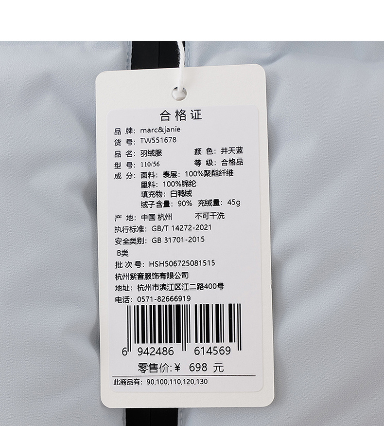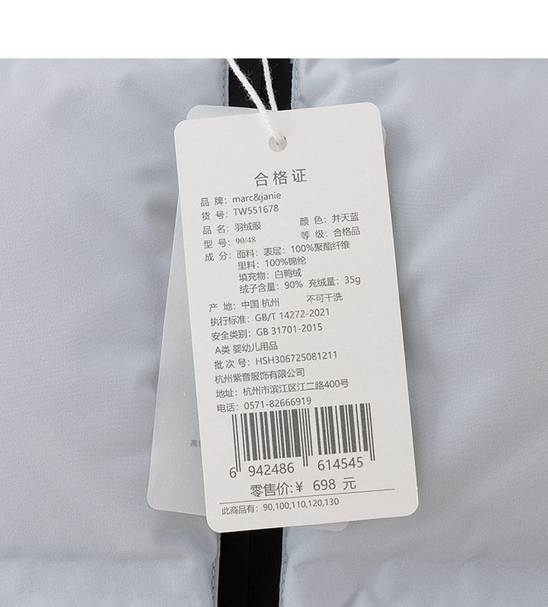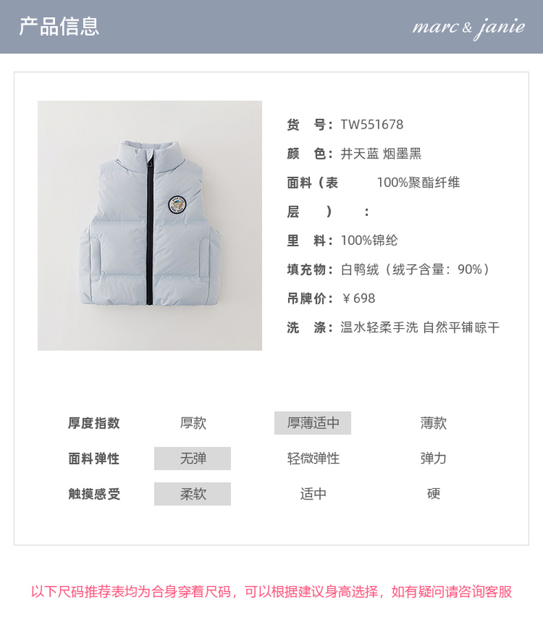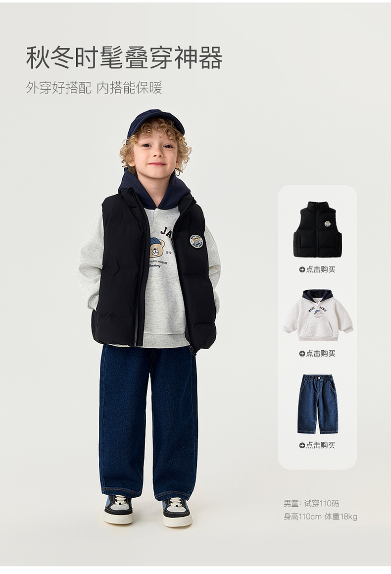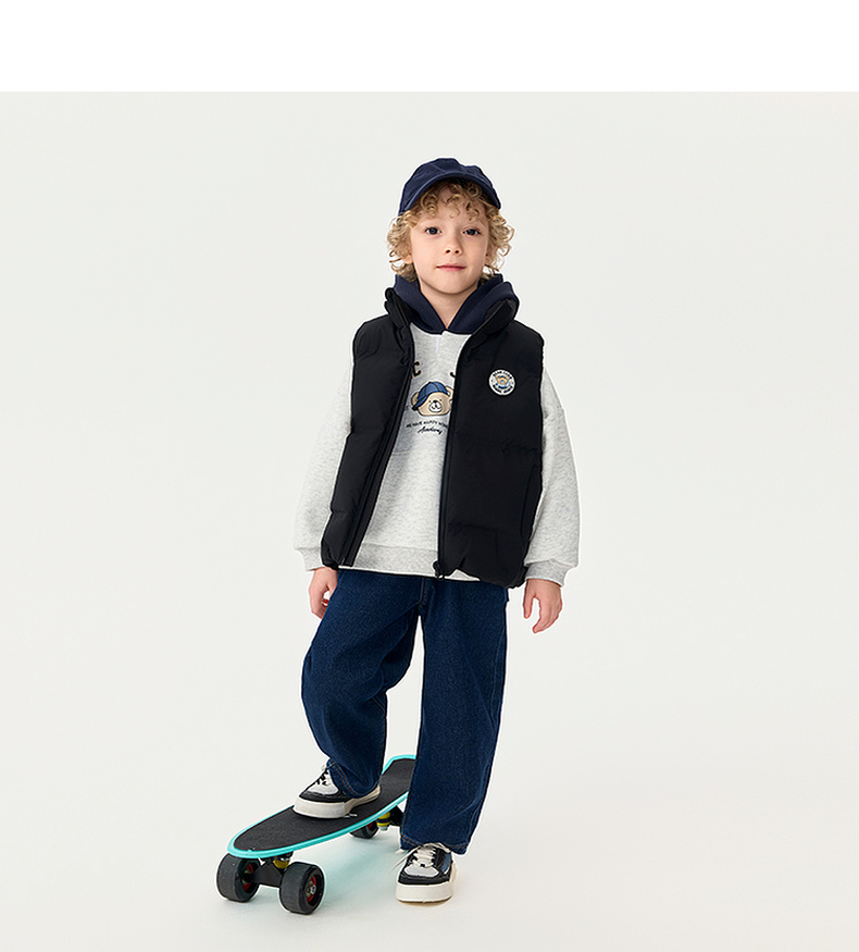 【无氟防泼水】马克珍妮男童无缝保暖羽绒小马甲2025年秋冬新款551678