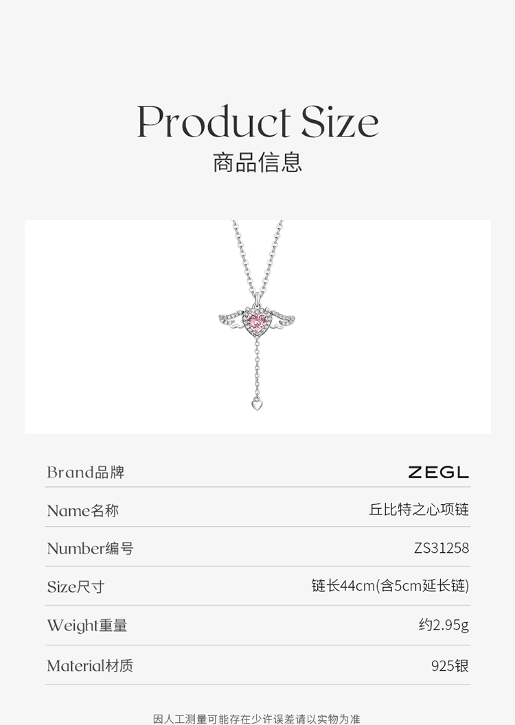 ZEGL丘比特之心项链女925纯银浪漫主义天使锁骨链生日礼物送女友