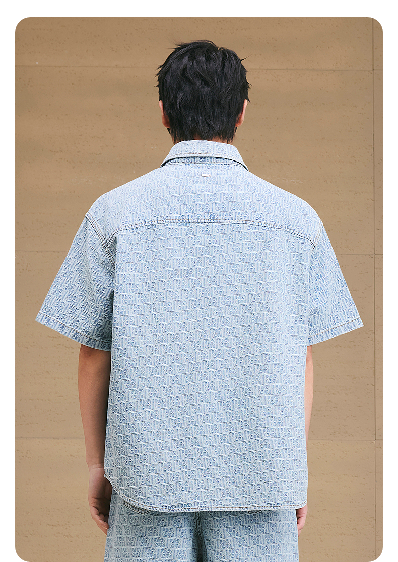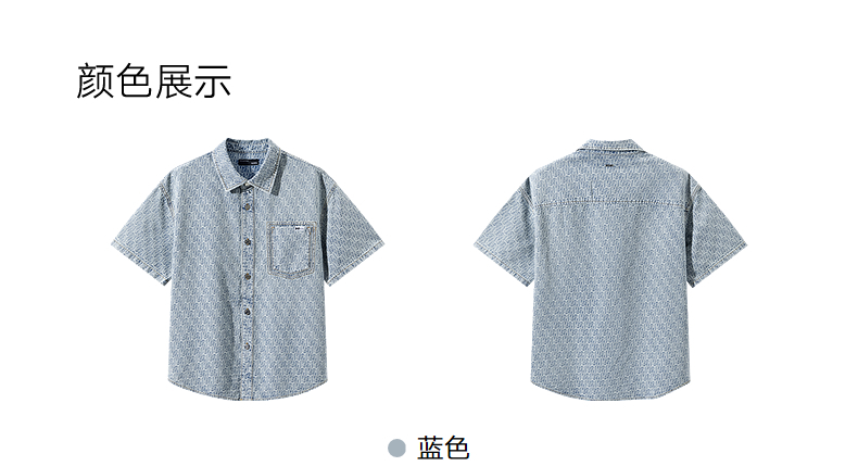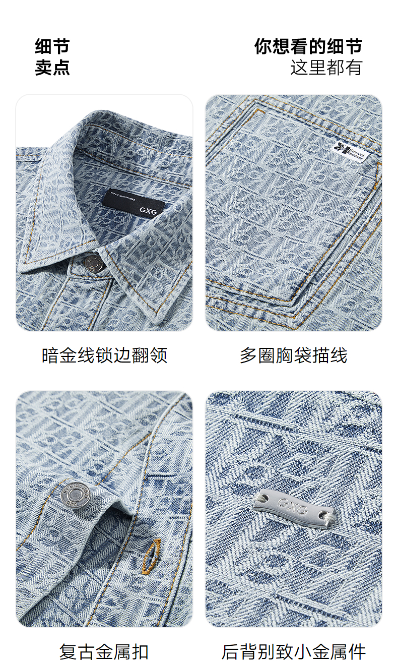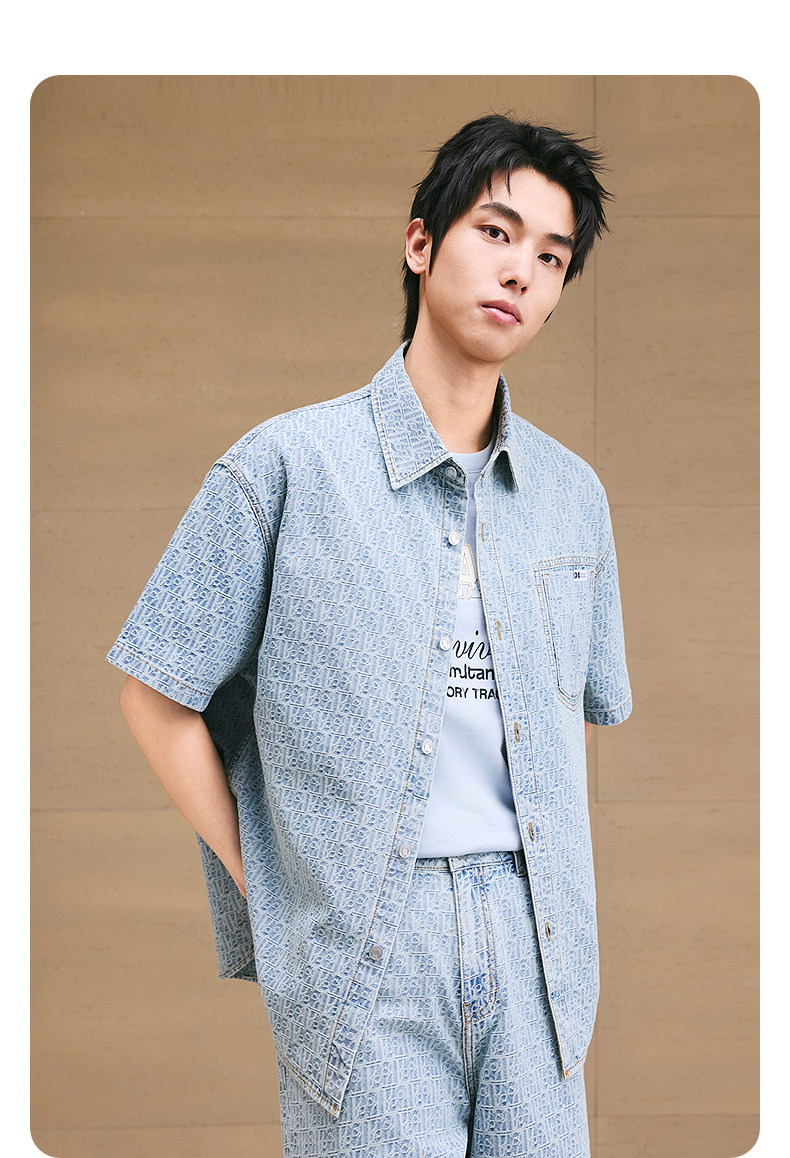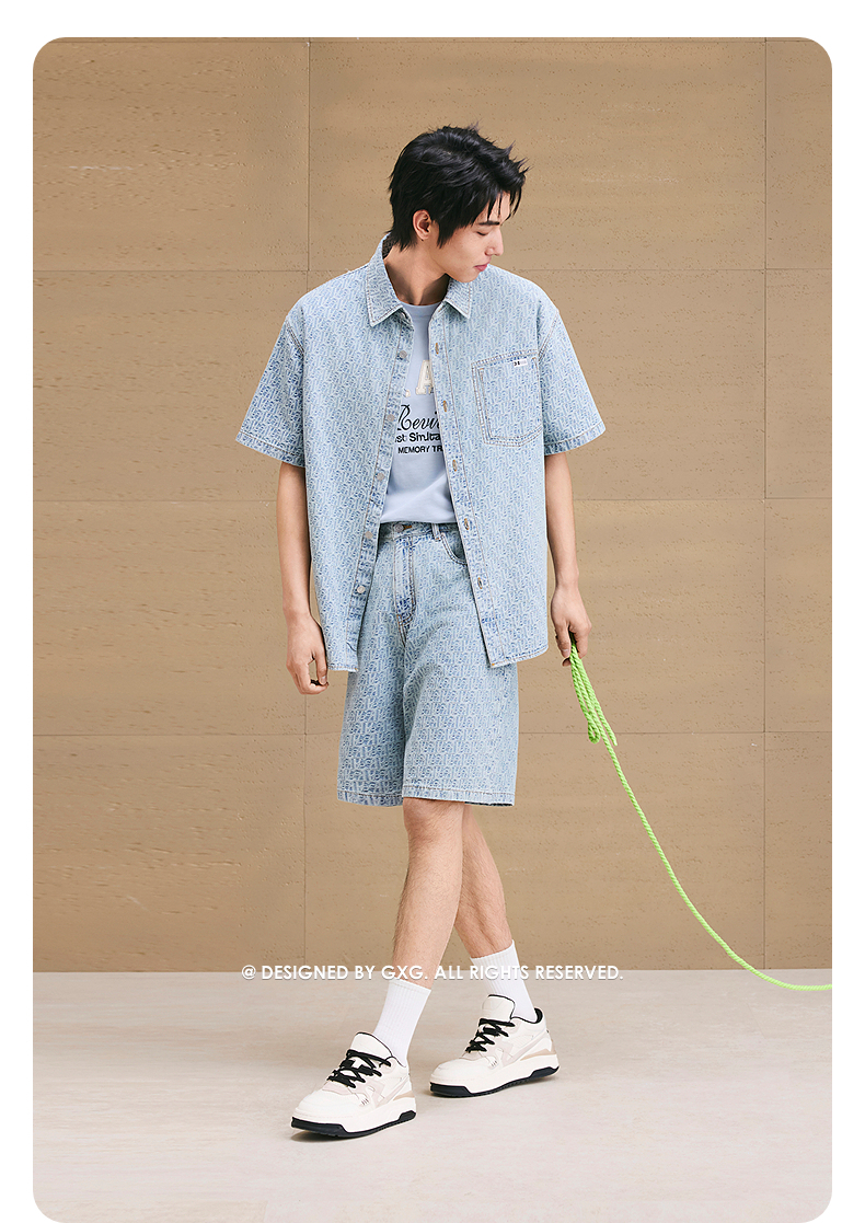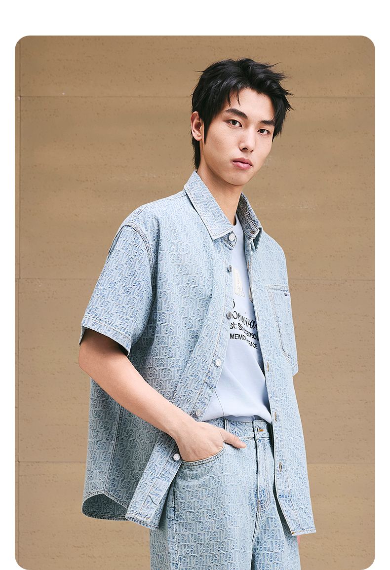 GXG男装 提花牛仔短袖衬衫通勤休闲衬衣轻薄男上衣 2025夏季新品