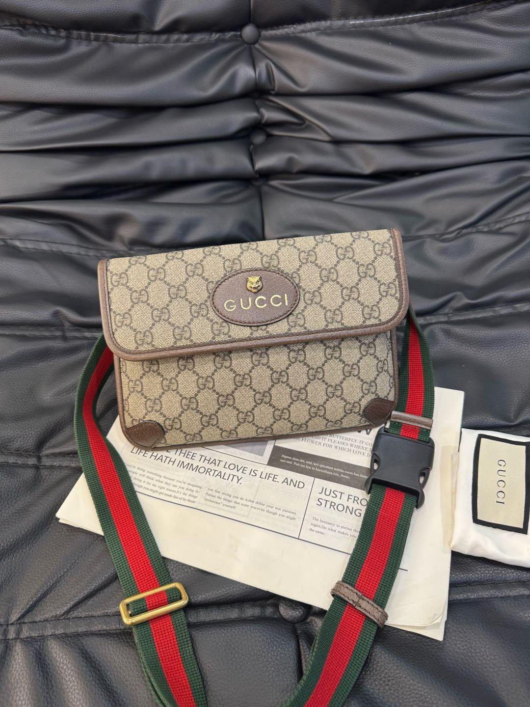 【商品詳情】正品二手 Gucci 老花 虎头 胸包🐯 95新 24x15 配件:说明书 吊牌 防尘袋。包边正常使用感。休闲轻便洋气 集合一身