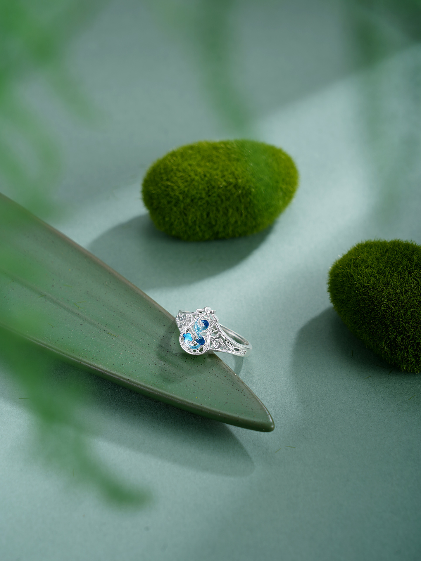 【寓意】:作品采非遗银花丝打造,银丝勾勒旗袍轮廓,珐琅彩绘添清冷气质;祥云纹样巧妙点缀,寄予佩戴者一生优雅如诗,岁岁吉祥。