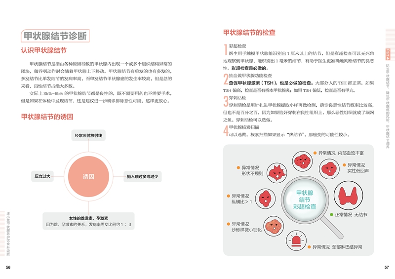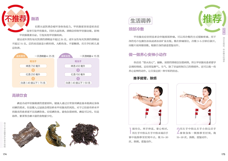 饮食是健康的基础,没病别吃出病,患病也可以通过饮食调理帮助恢复,所以帮助读者弄明白怎么吃更有利于健康、怎么吃不利于疾病康复是本书的立足点。本书通过告诉读者如何优选食物、哪些食物要少吃或不吃,以预防甲状腺疾病;同时又针对常见甲状腺疾患人群,如甲状腺功能亢进、甲状腺功能减退、甲状腺炎、甲状腺肿等,给予饮食调养、生活调养、具体用药指导,来辅助治疗疾病、改善不适症状。但是,千万不要对照书本找疾病,硬给自己扣上“患病”的帽子,徒增不必要的心理负担。