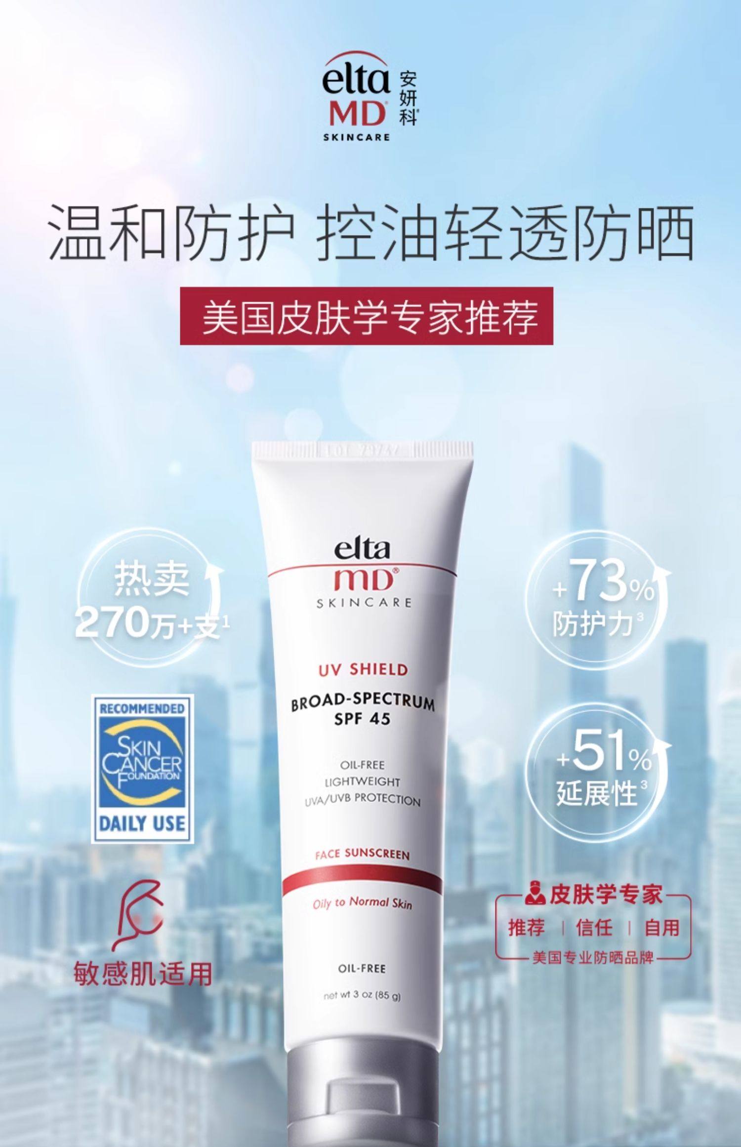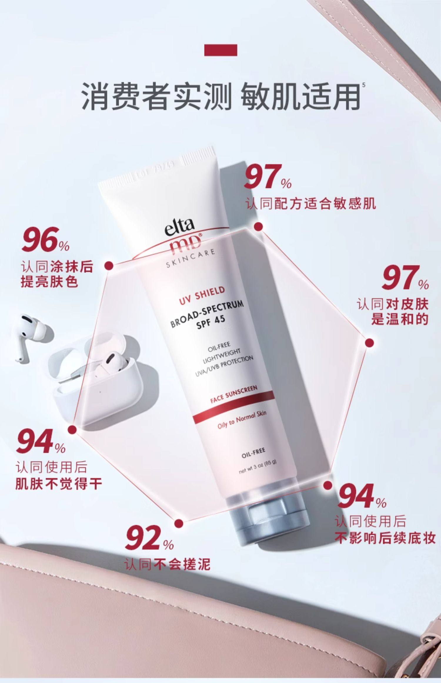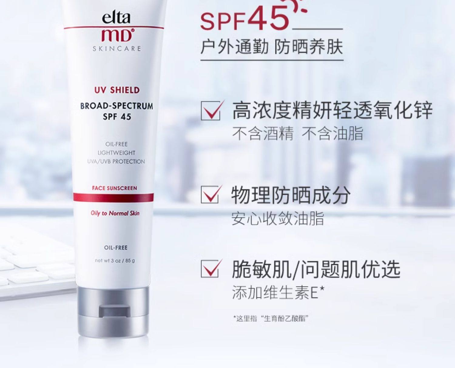 EltaMD 清透养肤面部隔离物化防晒霜85g SPF45