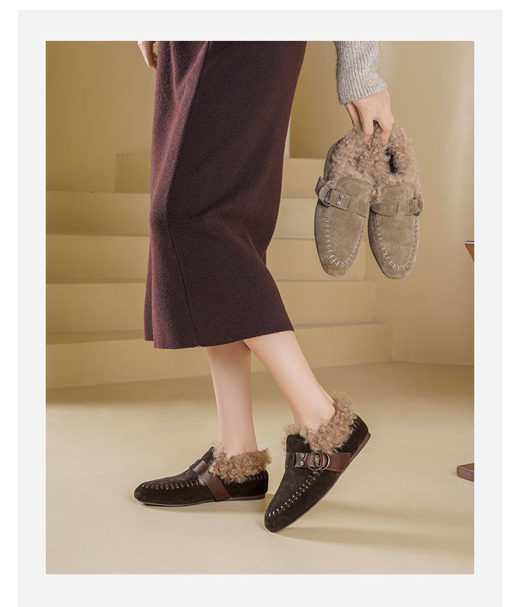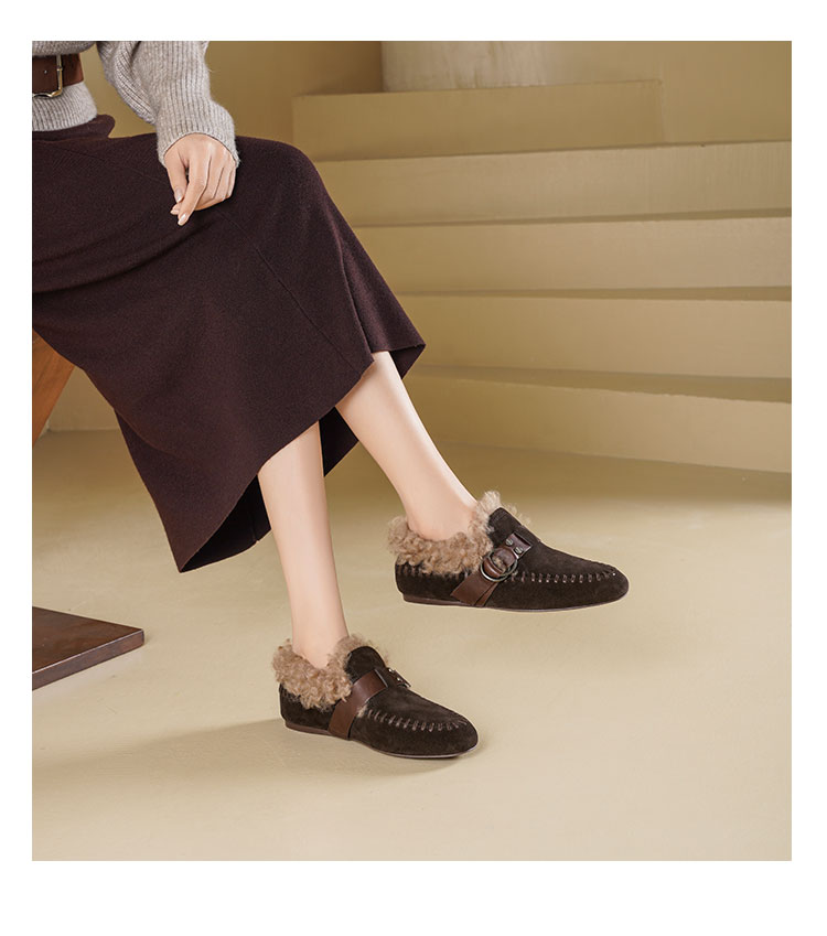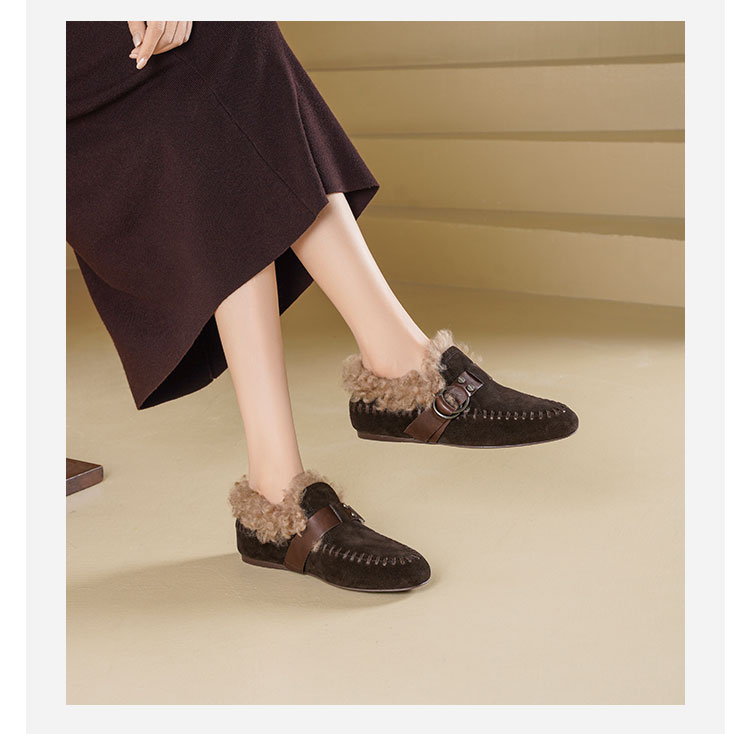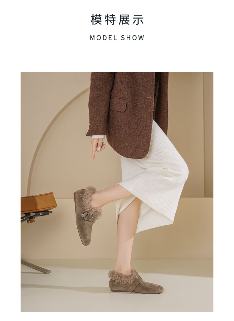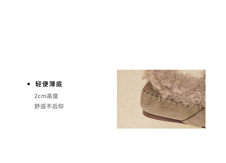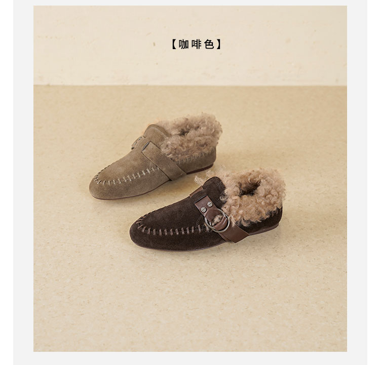 Westory2025年冬季牛绒面平底鞋口卷羊毛内里加绒休闲保暖毛毛单鞋W25DM86381