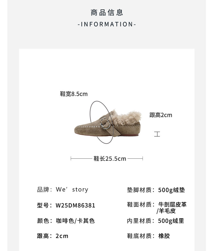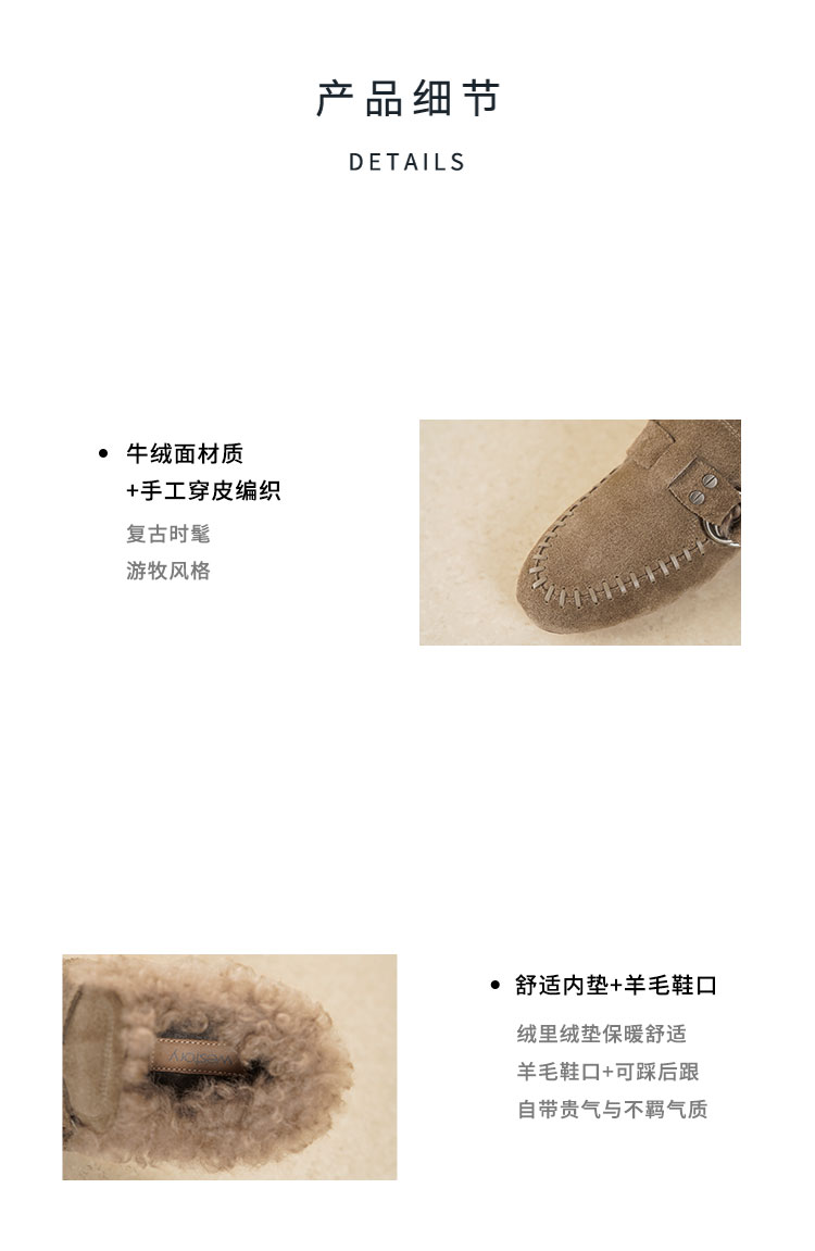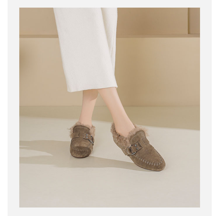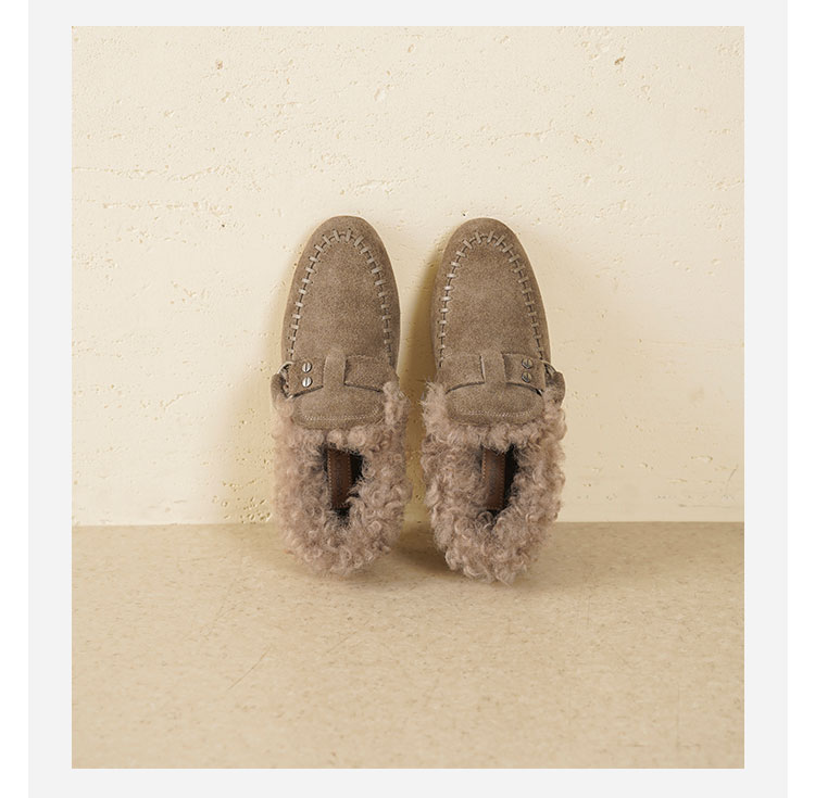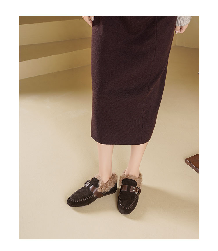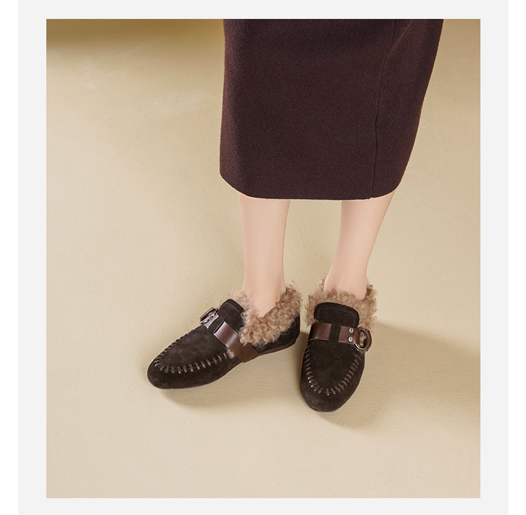 Westory2025年冬季牛绒面平底鞋口卷羊毛内里加绒休闲保暖毛毛单鞋W25DM86381