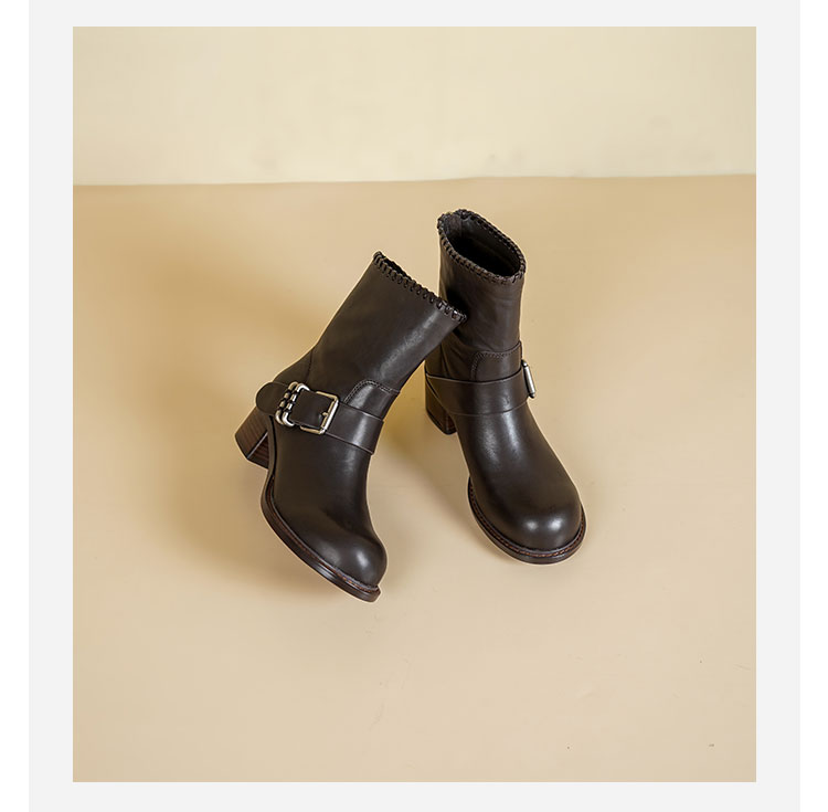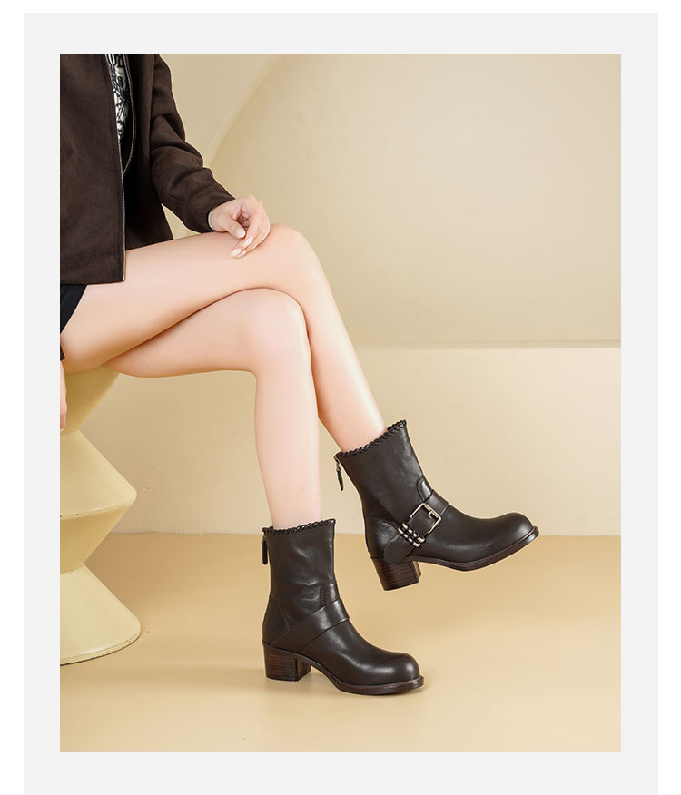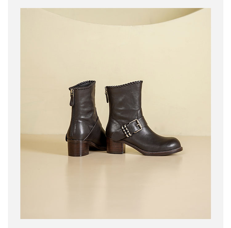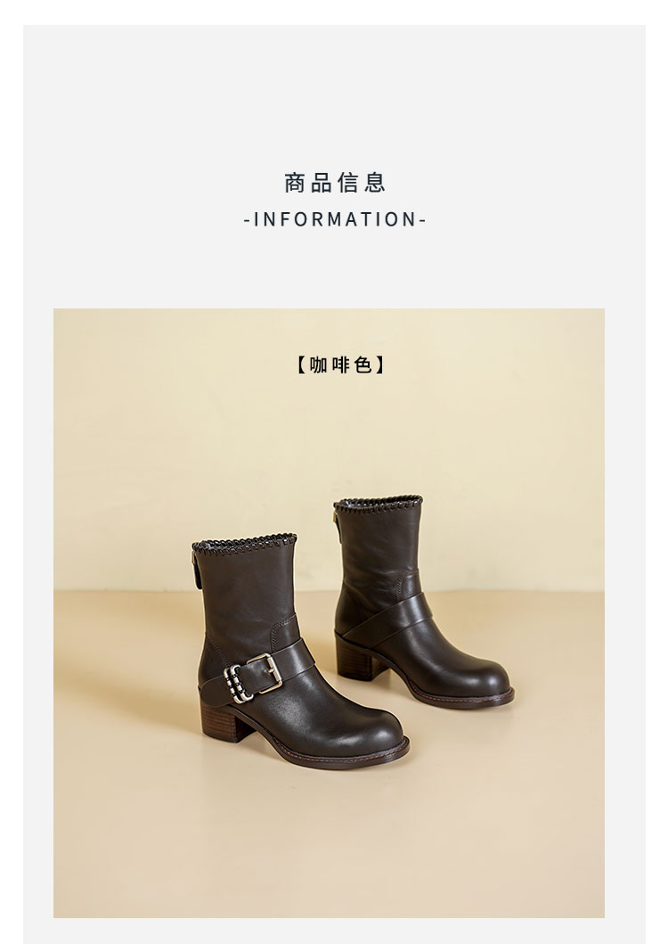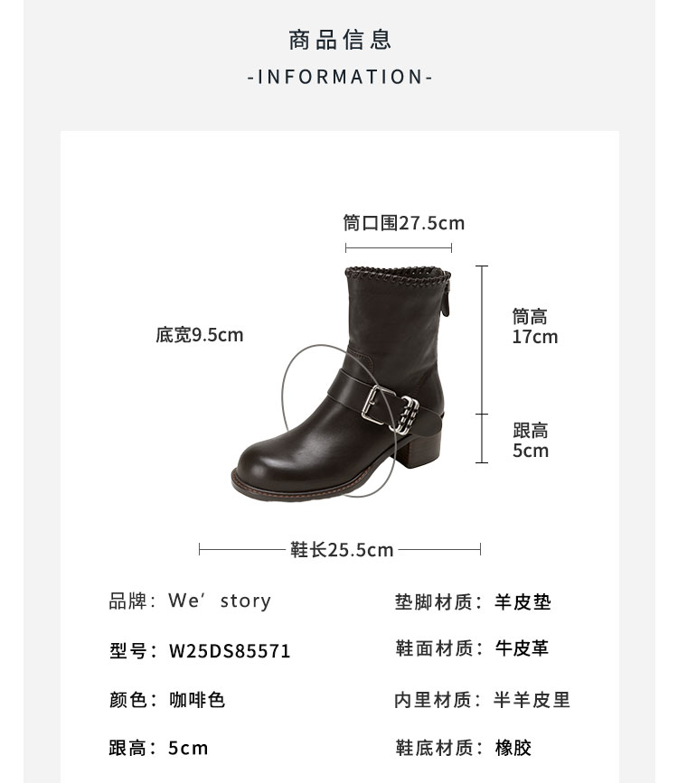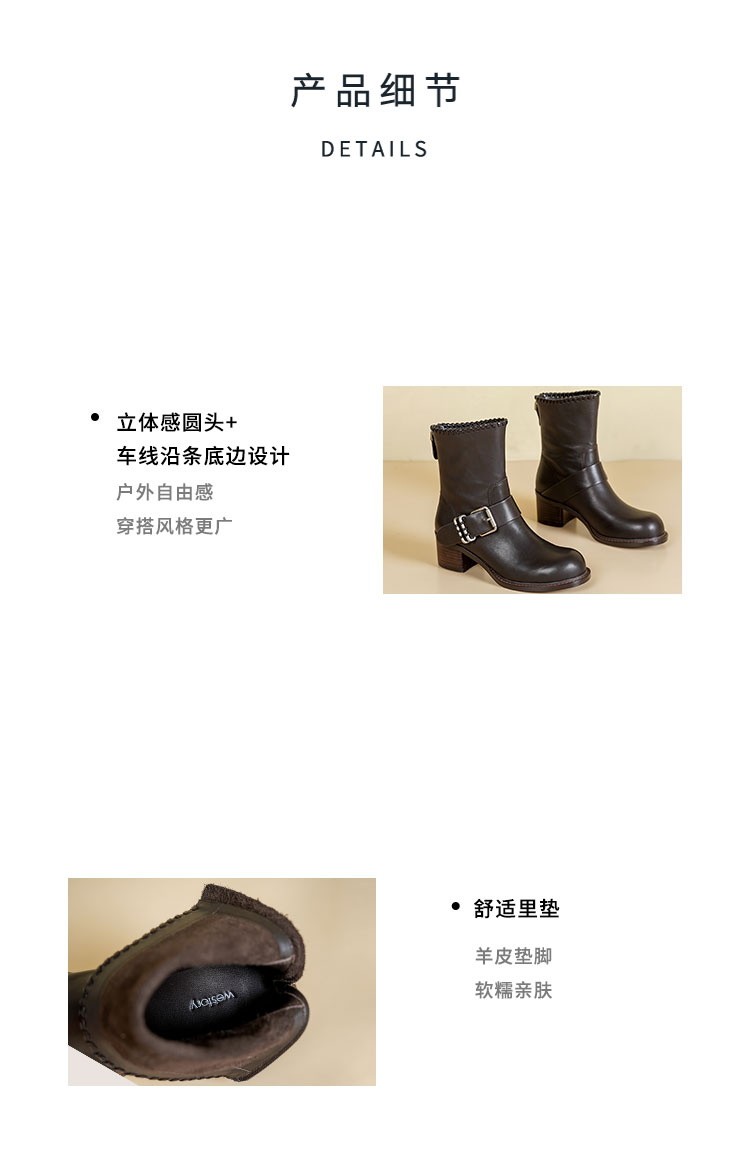 Westory2025年冬季牛皮圆头中跟帅气轻朋克复古西部靴休闲短靴W25DS85571