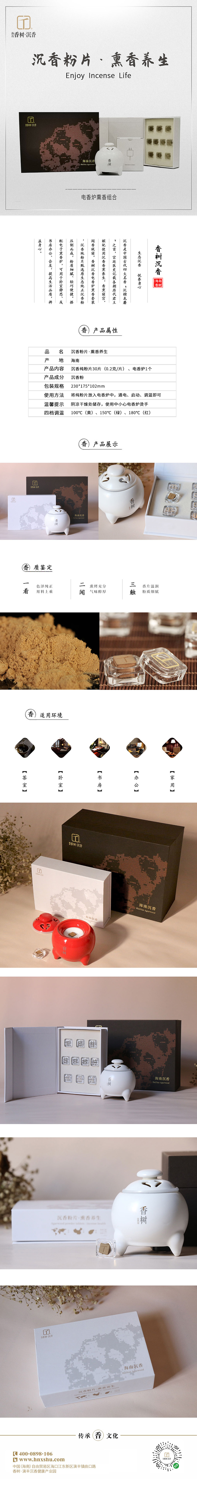 【海岛香树】健康生活沉香品香套装(经典款)30片装、电子品香炉
