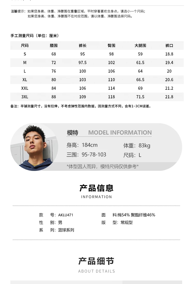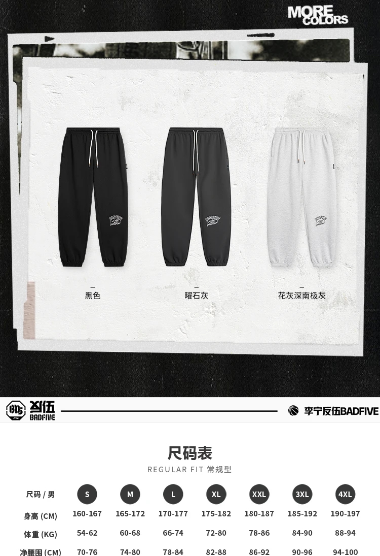 李宁反伍BADFIVE男子束脚冰感舒适卫裤AKLU471