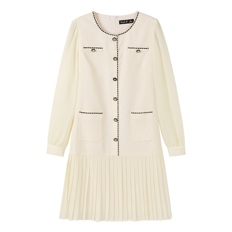 奢姿2025年春季新款大码女装拼接百褶法式裙子胖妹妹圆领连衣裙9951892531