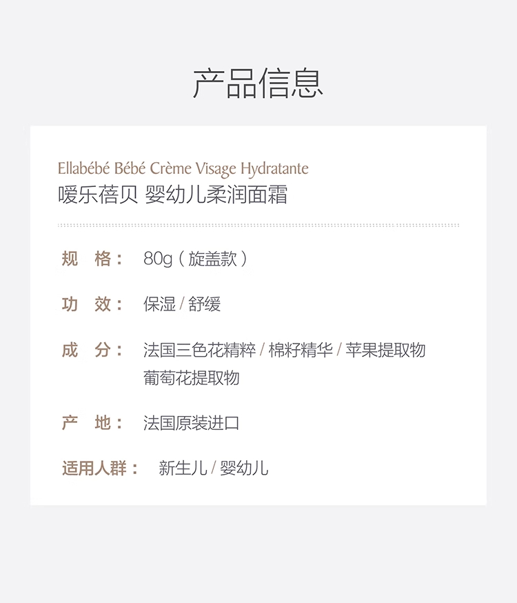 嗳乐蓓贝法国进口小奶霜80g宝宝面霜换季补水保湿滋润儿童润肤乳/ALB-709960