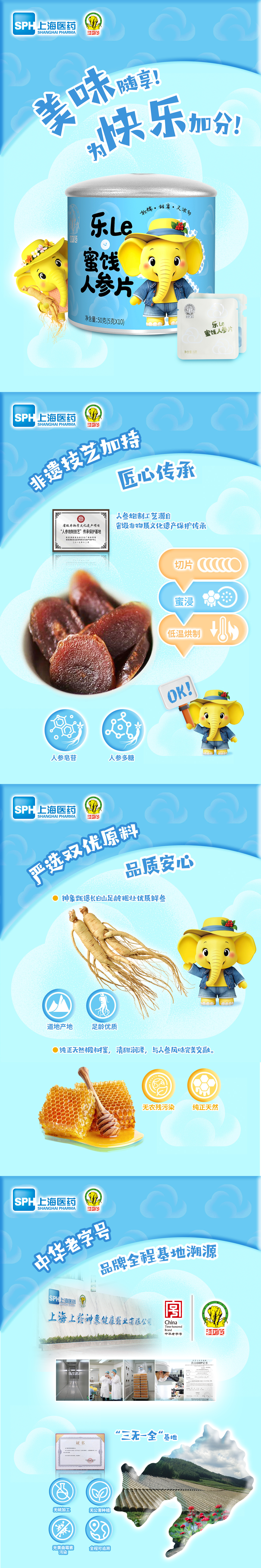 上药神象蜜饯人参片50克每罐 独立小包装即食厚片 非遗技艺加持