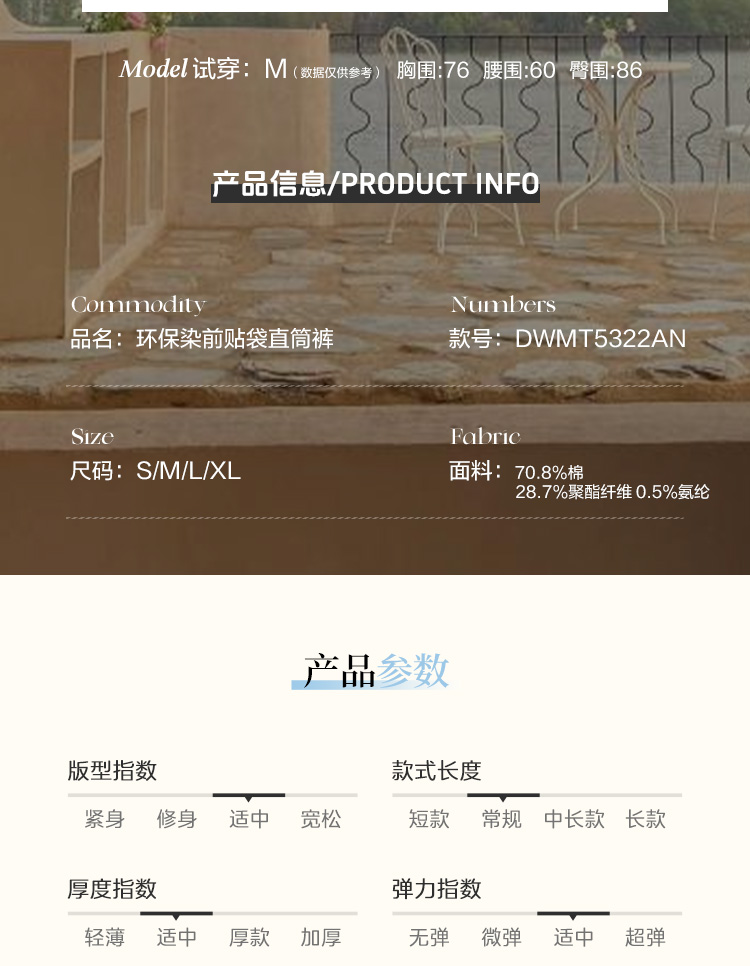 东黎 • 岛屿假日—沉星裤 女士春夏环保染前贴袋直筒裤 5322