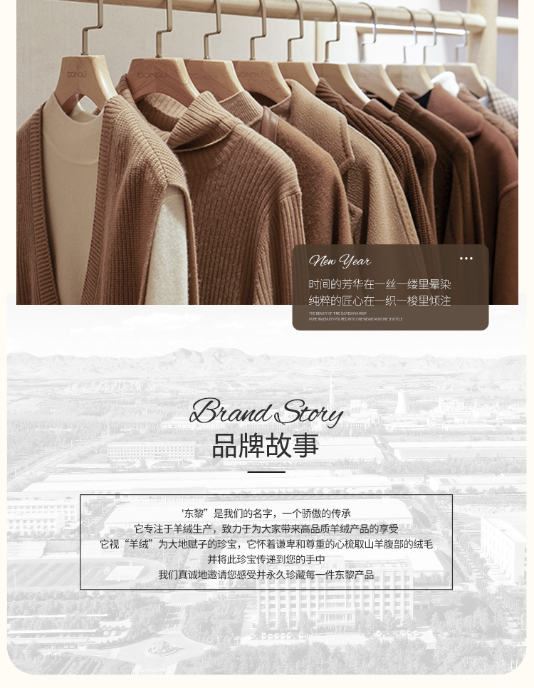 东黎羊绒是赤峰东荣集团自主品牌,自有牧场/羊绒制品全产业链优势,实现了羊绒从“牧场”到“商场”的华丽转变。