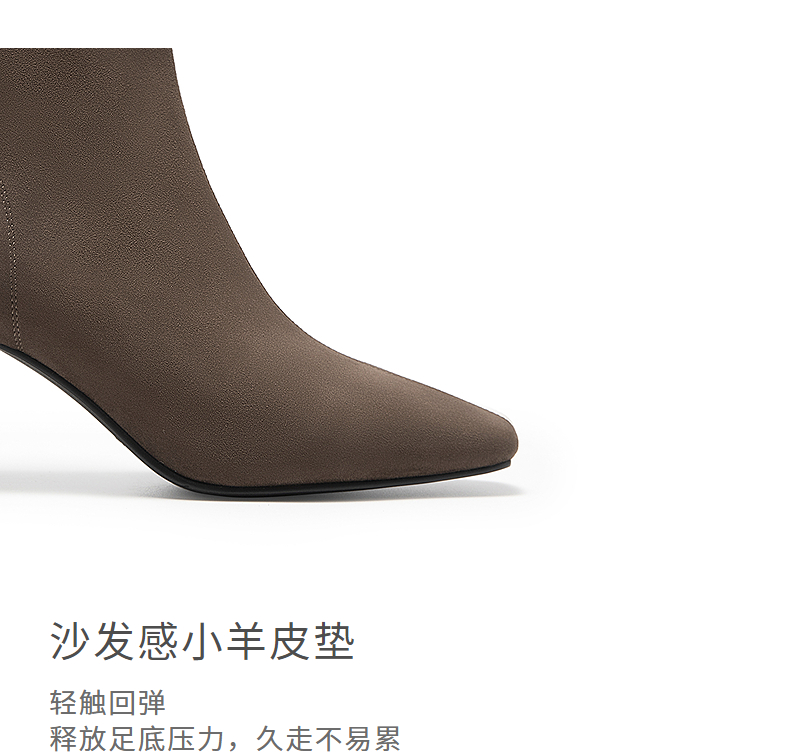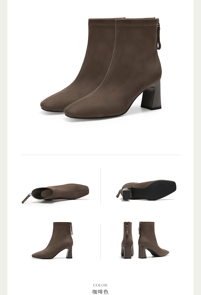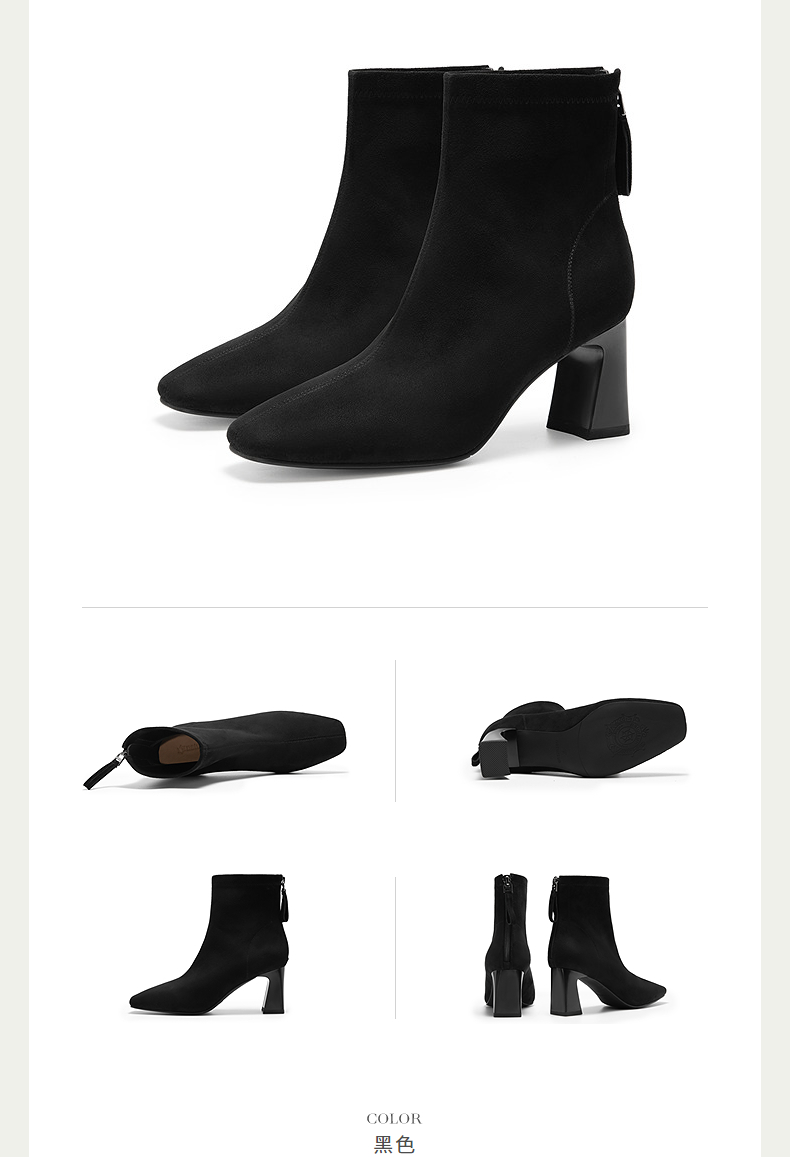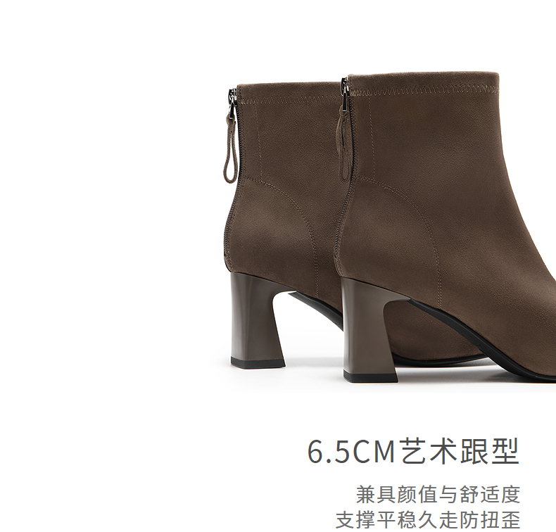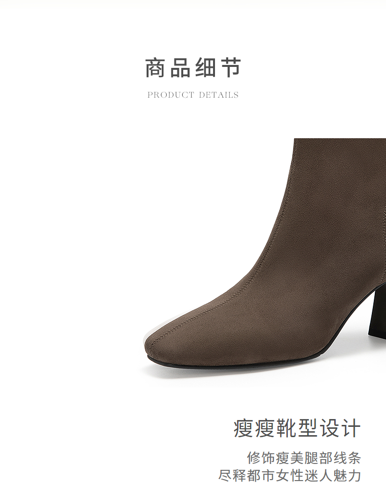 natursun粗跟高跟弹力靴女士复古气质短筒靴显瘦袜靴N25538182