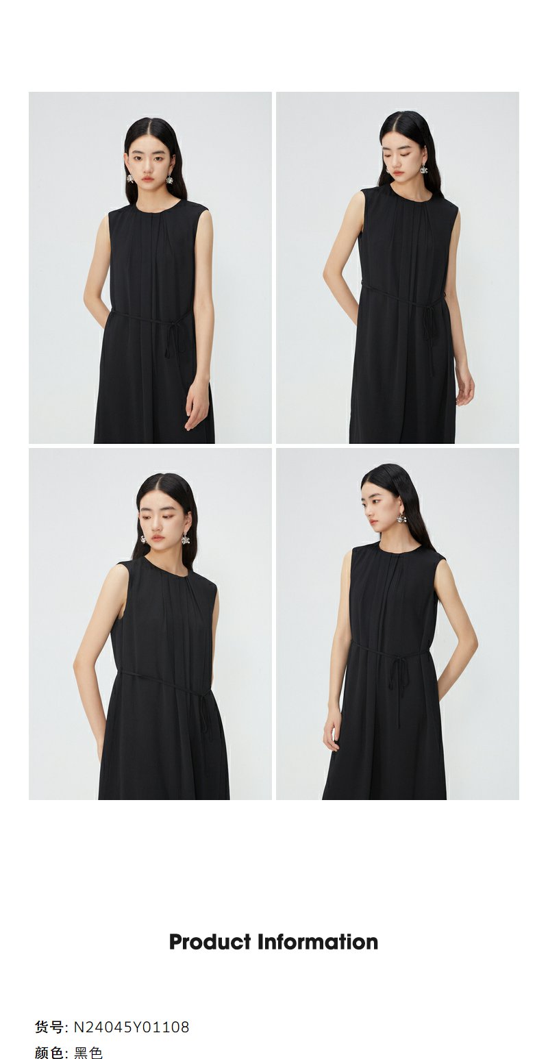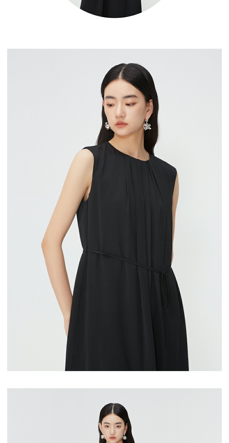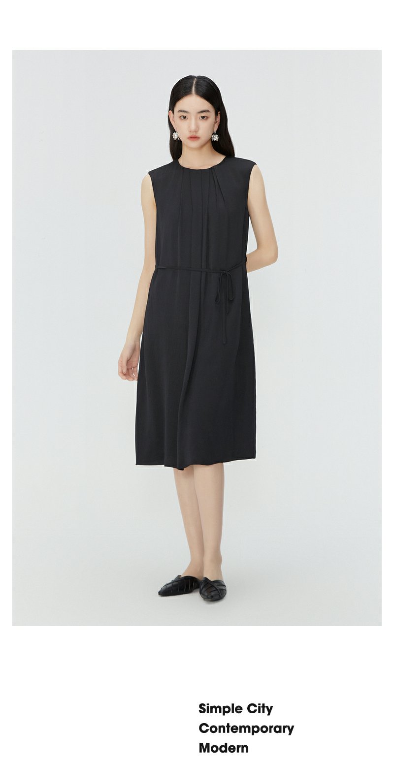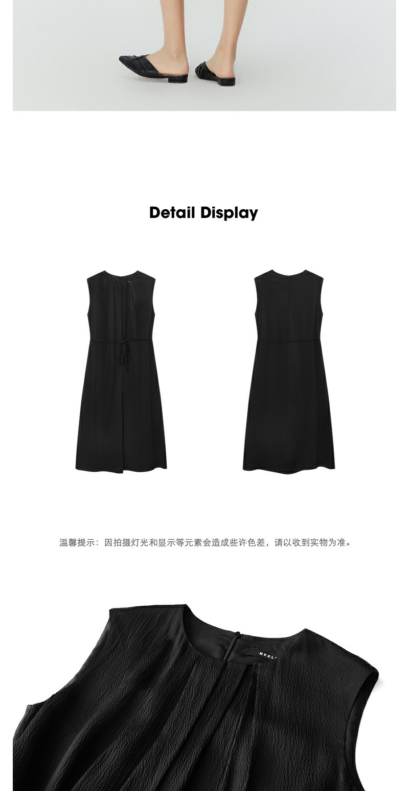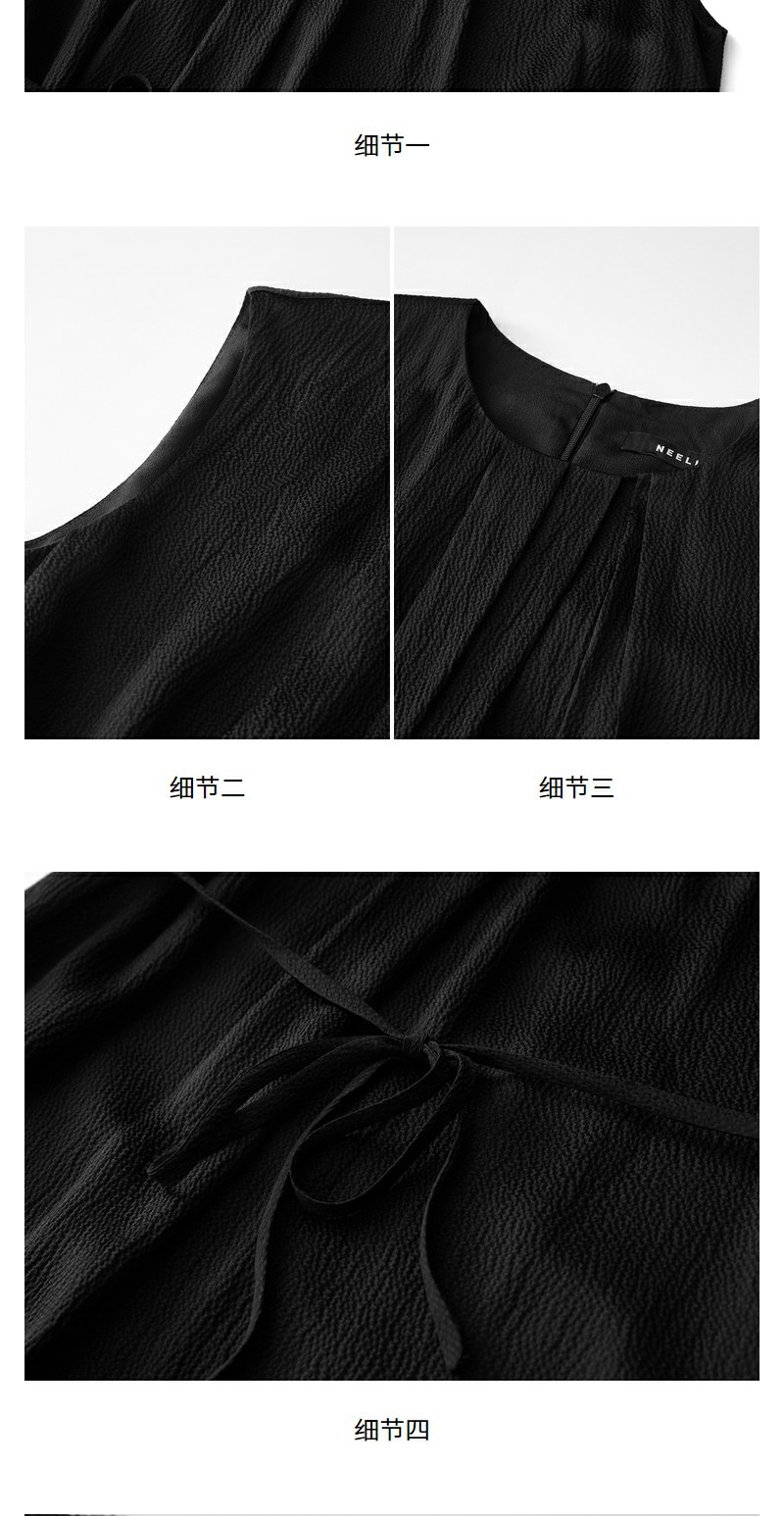 NEELLY纳俪商场同款桑蚕丝圆领无袖简约连衣裙女系带收腰显瘦裙子N24045Y01108