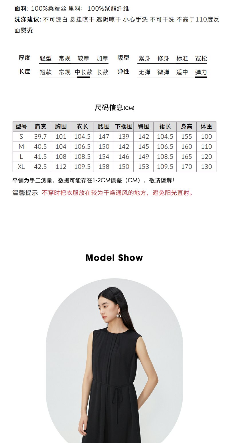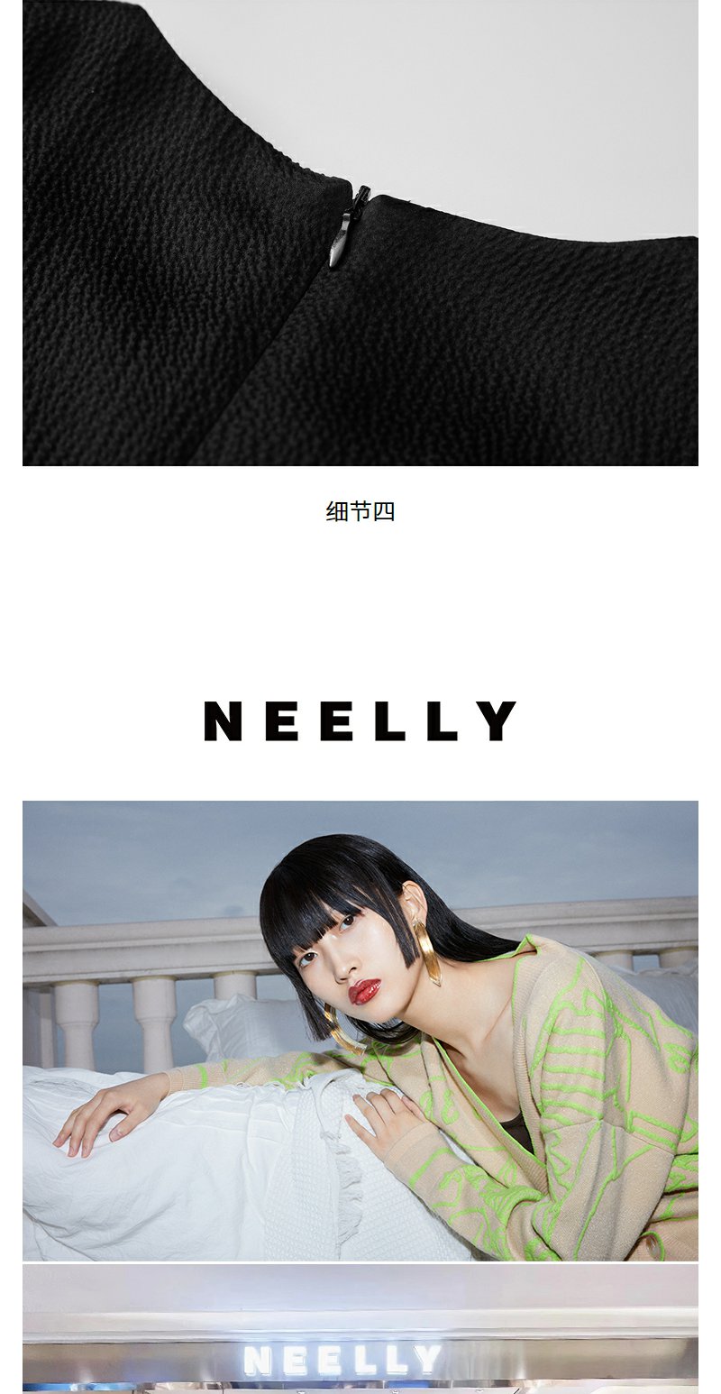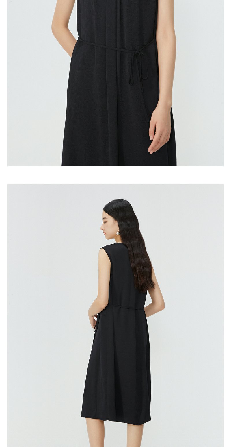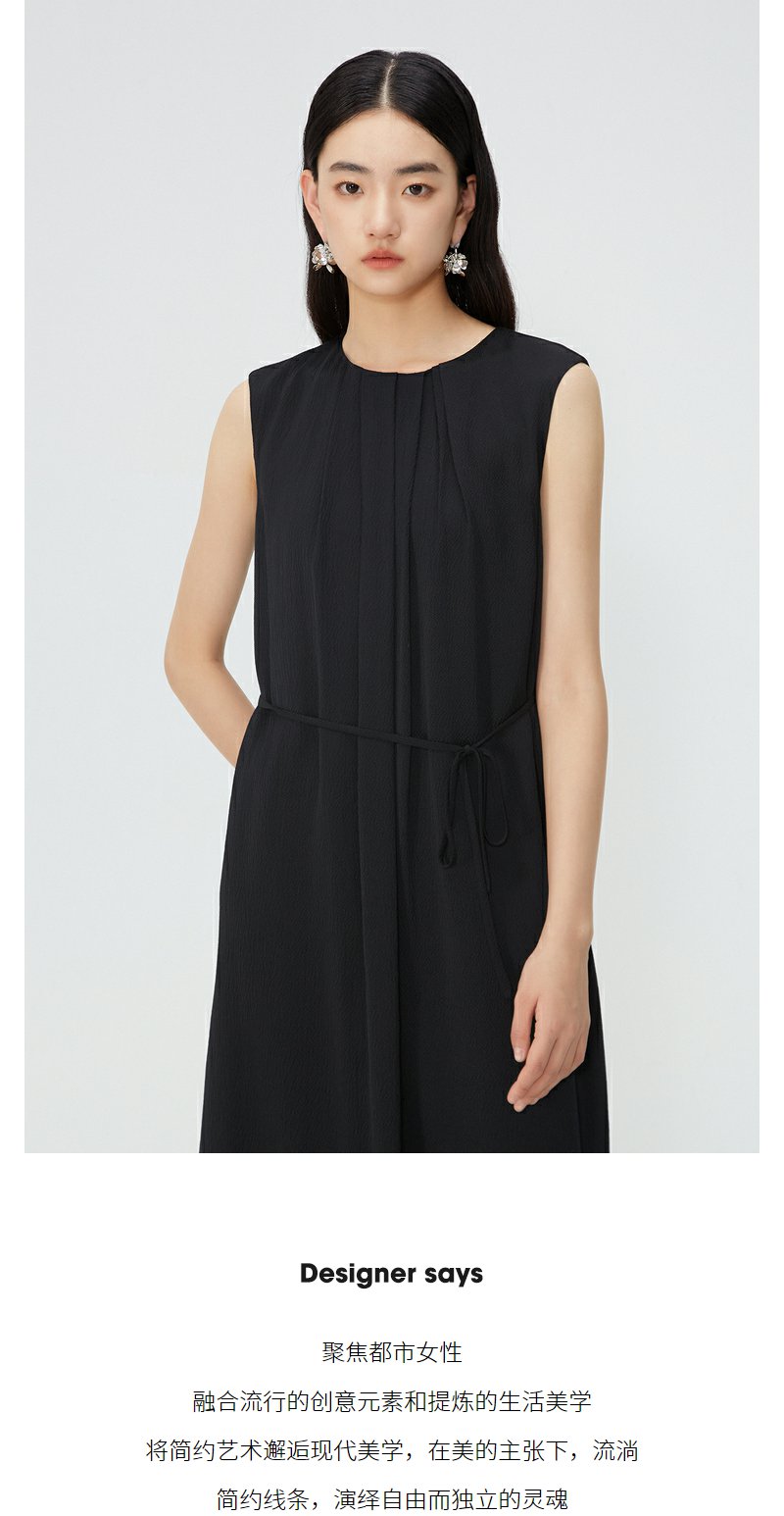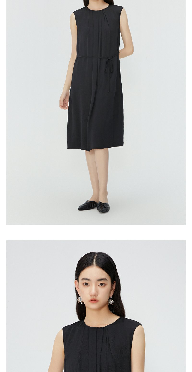 NEELLY纳俪商场同款桑蚕丝圆领无袖简约连衣裙女系带收腰显瘦裙子N24045Y01108