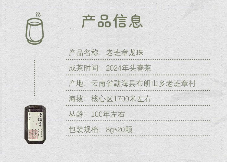 生普| 【镇店之宝】2024年老班章核心区100左右龙珠8g*20颗