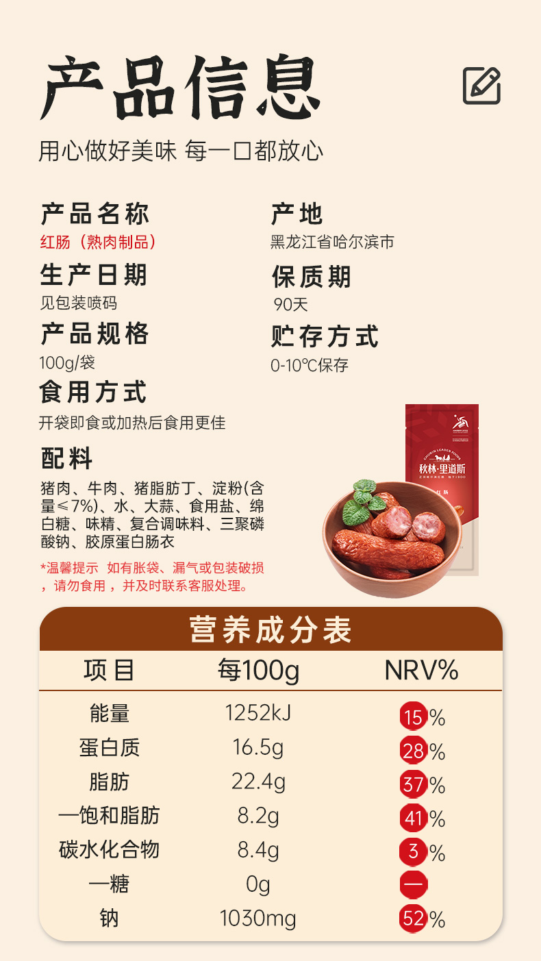 秋林里道斯红肠运动员版-100g*5 100g*10