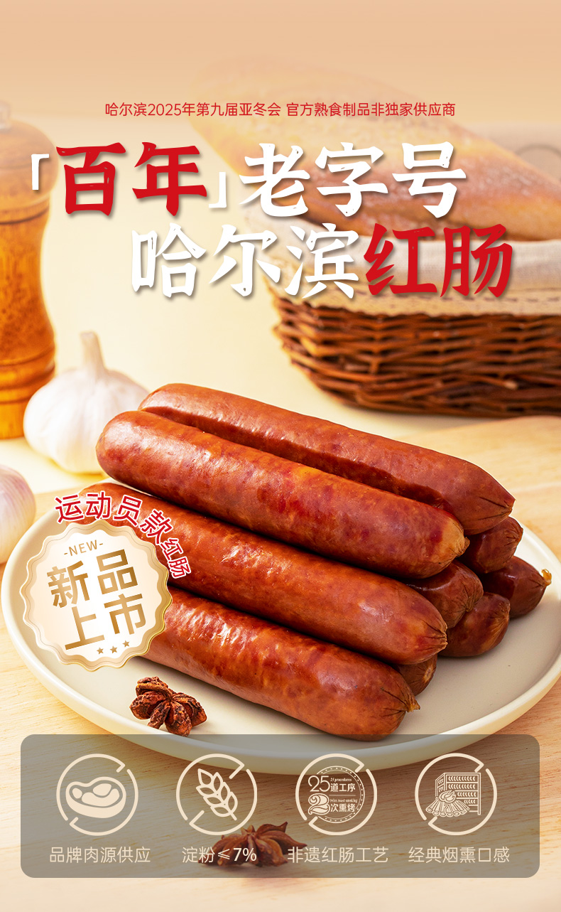秋林里道斯食品 哈尔滨红肠580g袋中华老字号 休闲零食猪肉肠东北特产地道小吃香肠 开袋即食 哈尔滨红肠580g量贩装【加入购物车优先发货】 蒜香味