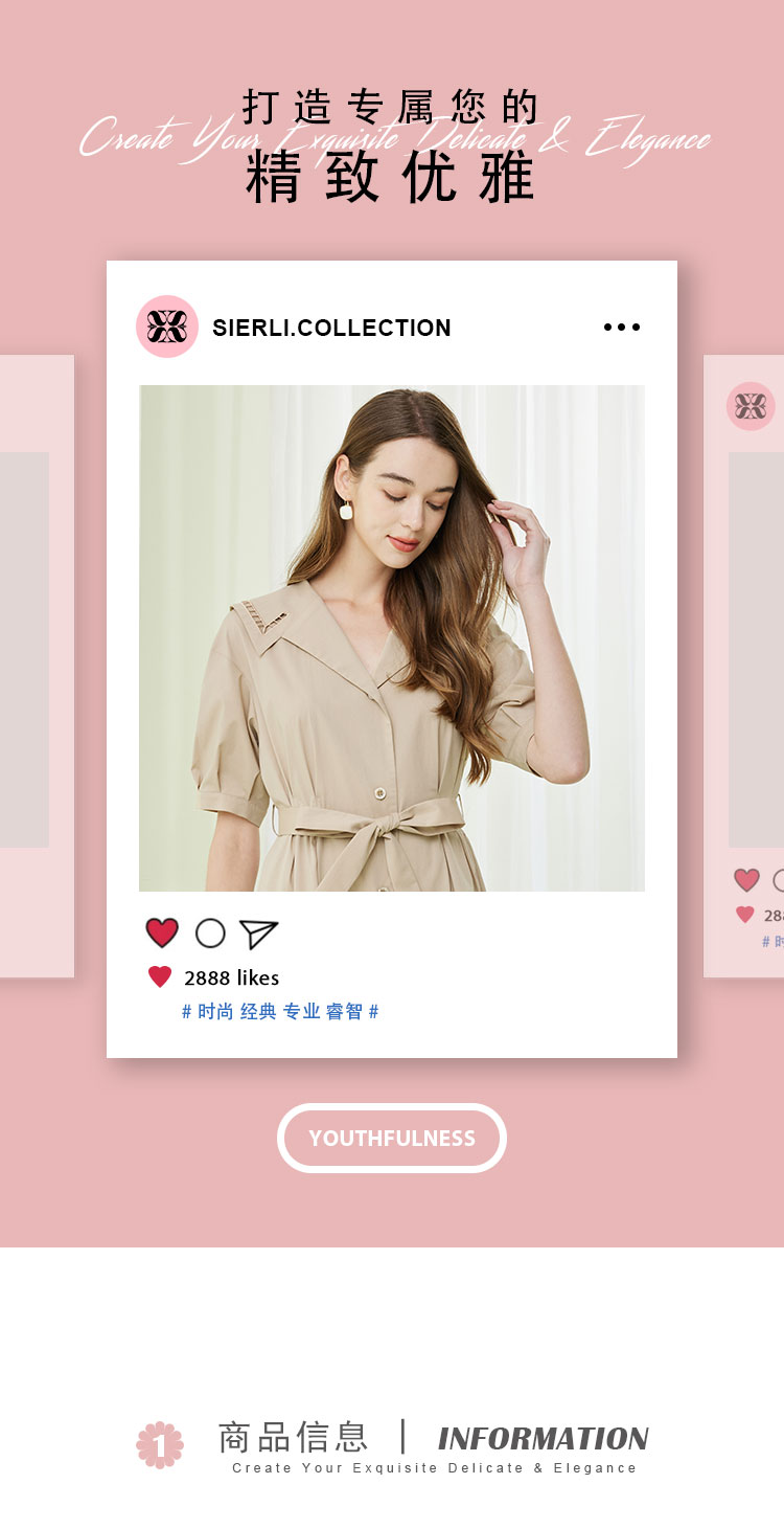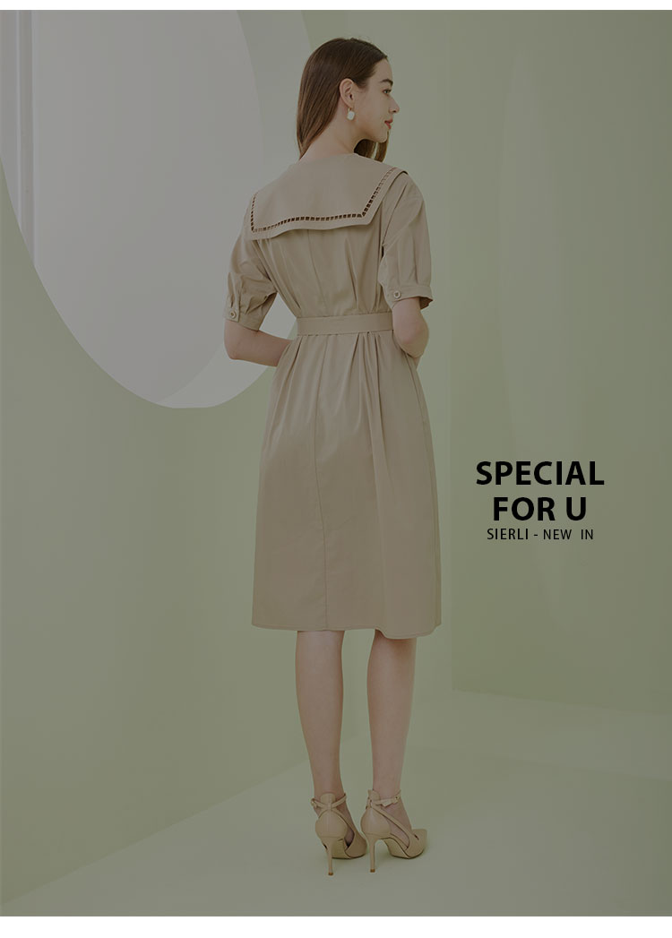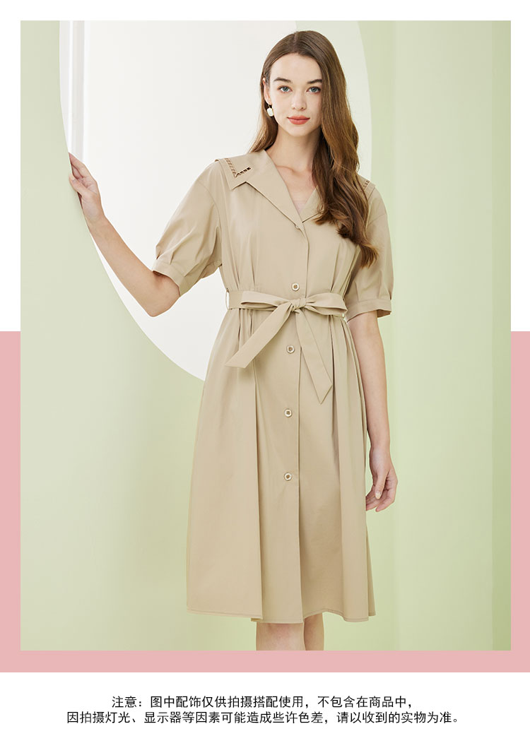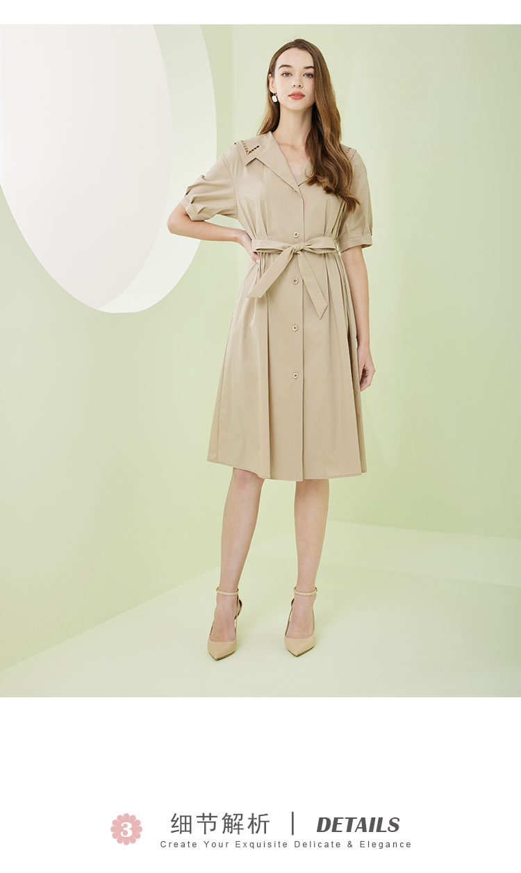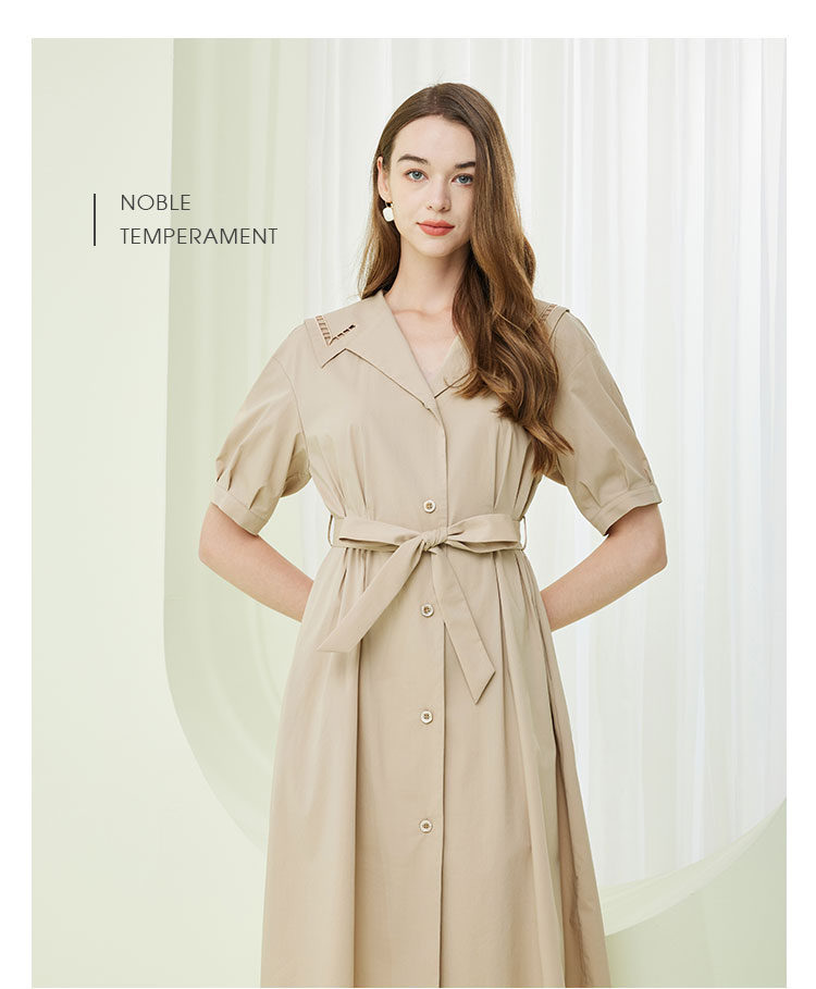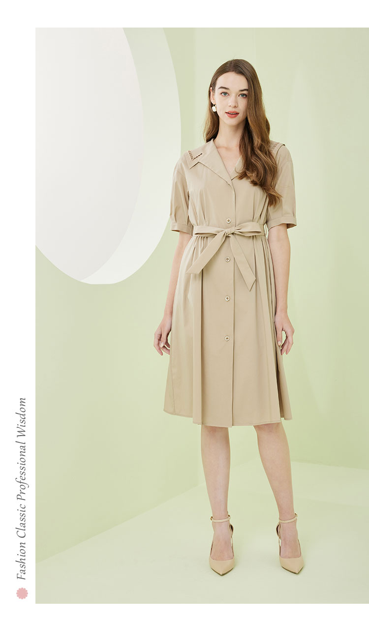 NF8X2斯尔丽瑟俪2023夏季新款单排扣短袖中长连衣裙通勤温柔风连衣裙
