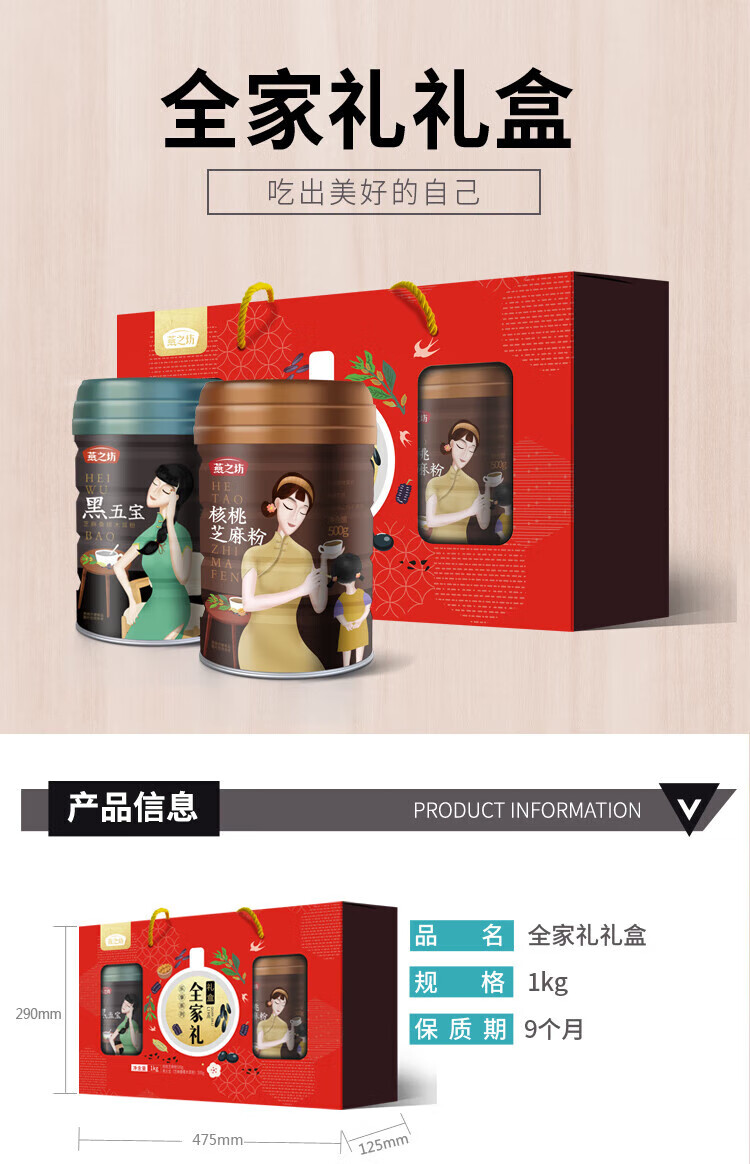 燕之坊 杂粮粉 全家礼礼盒1kg 核桃黑芝麻粉五宝粉代餐冲饮代餐饱腹送礼