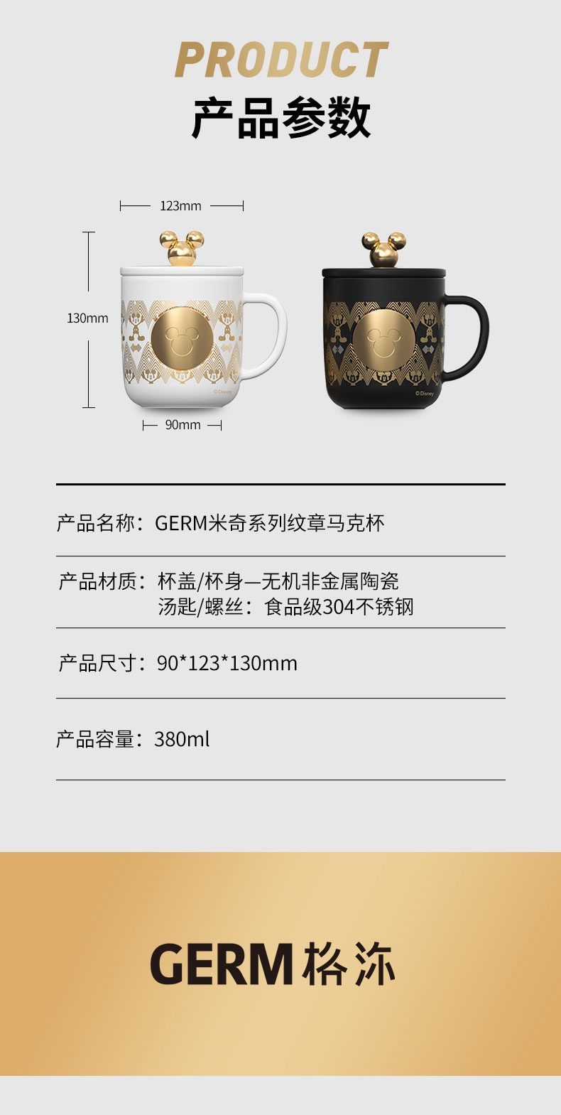 日本格沵(GERM)迪士尼联名陶瓷马克杯380ml