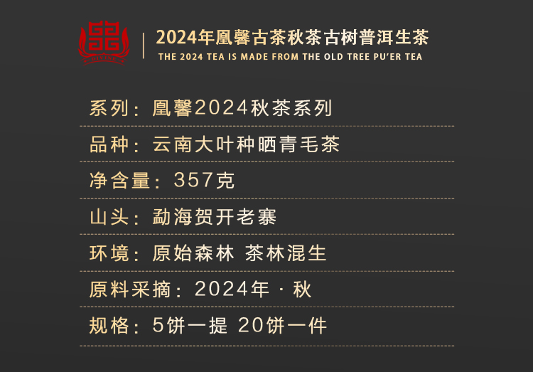 凰馨古茶 【23年问鼎景迈357克生茶】普洱茶