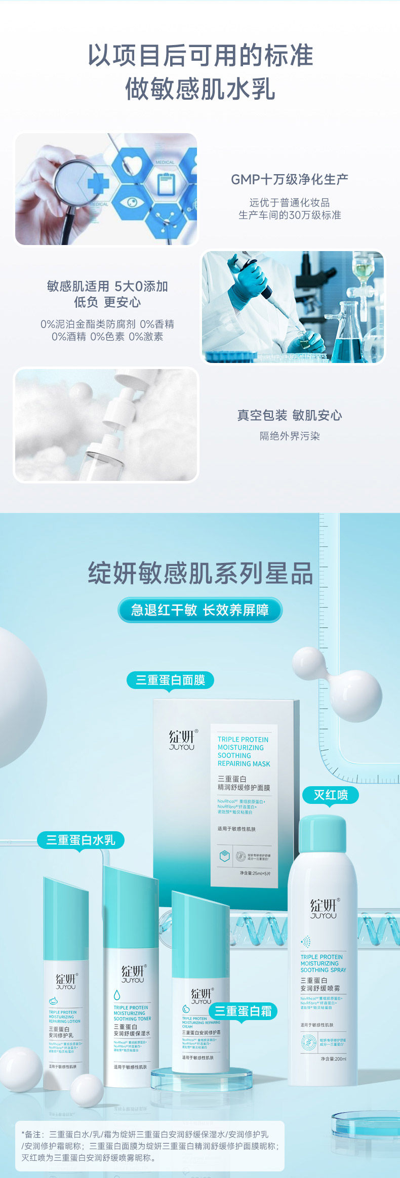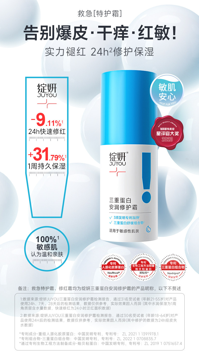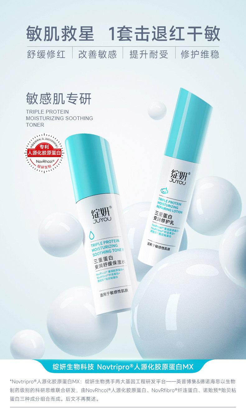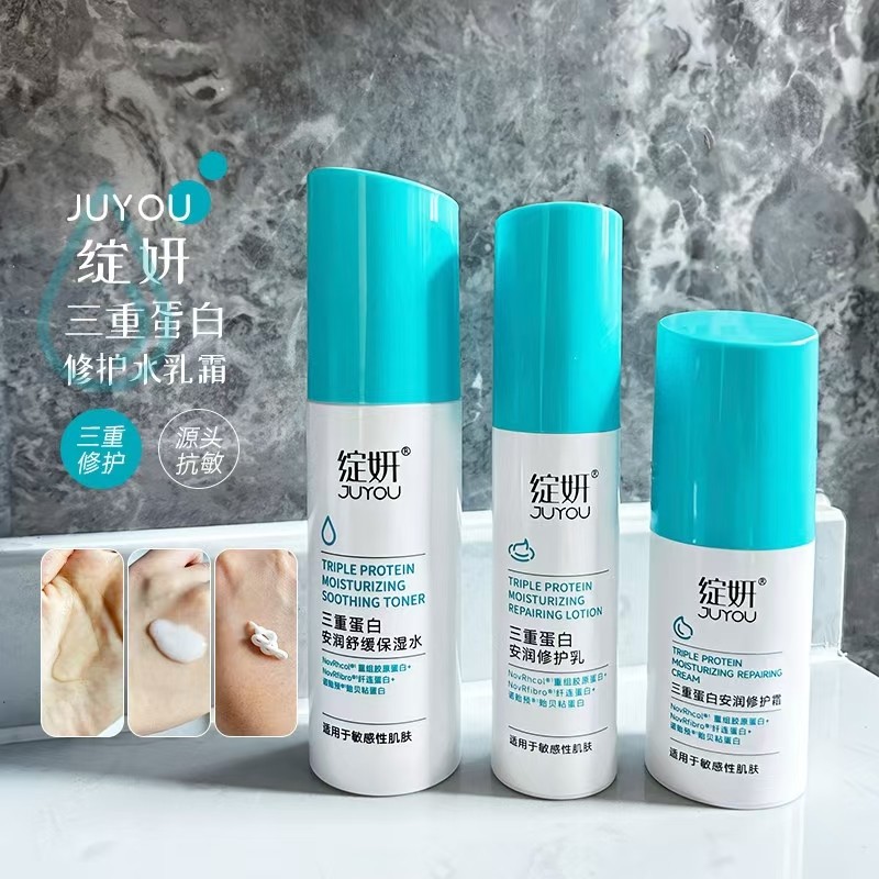 绽妍三重蛋白水乳霜套装 安润舒缓保湿水修护乳面霜补水保湿舒缓泛红敏感