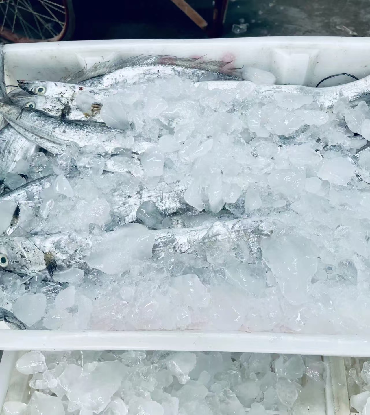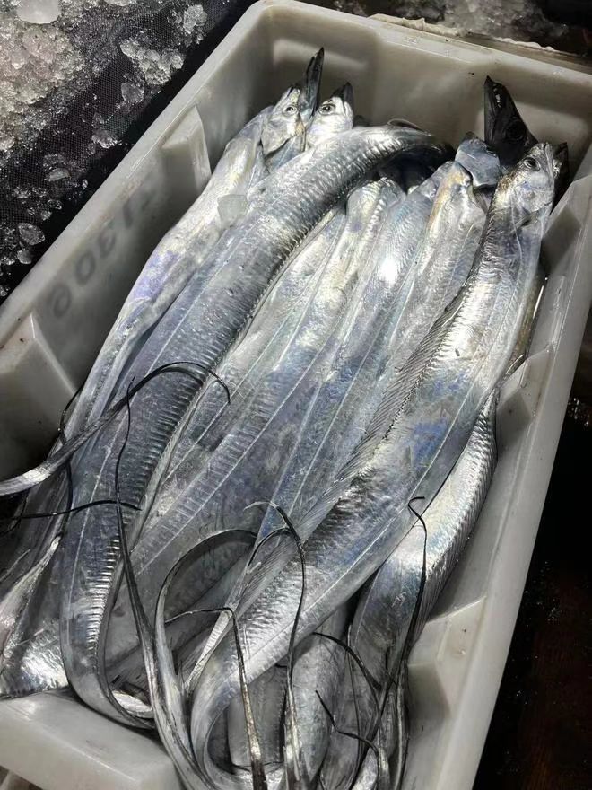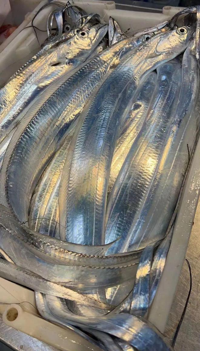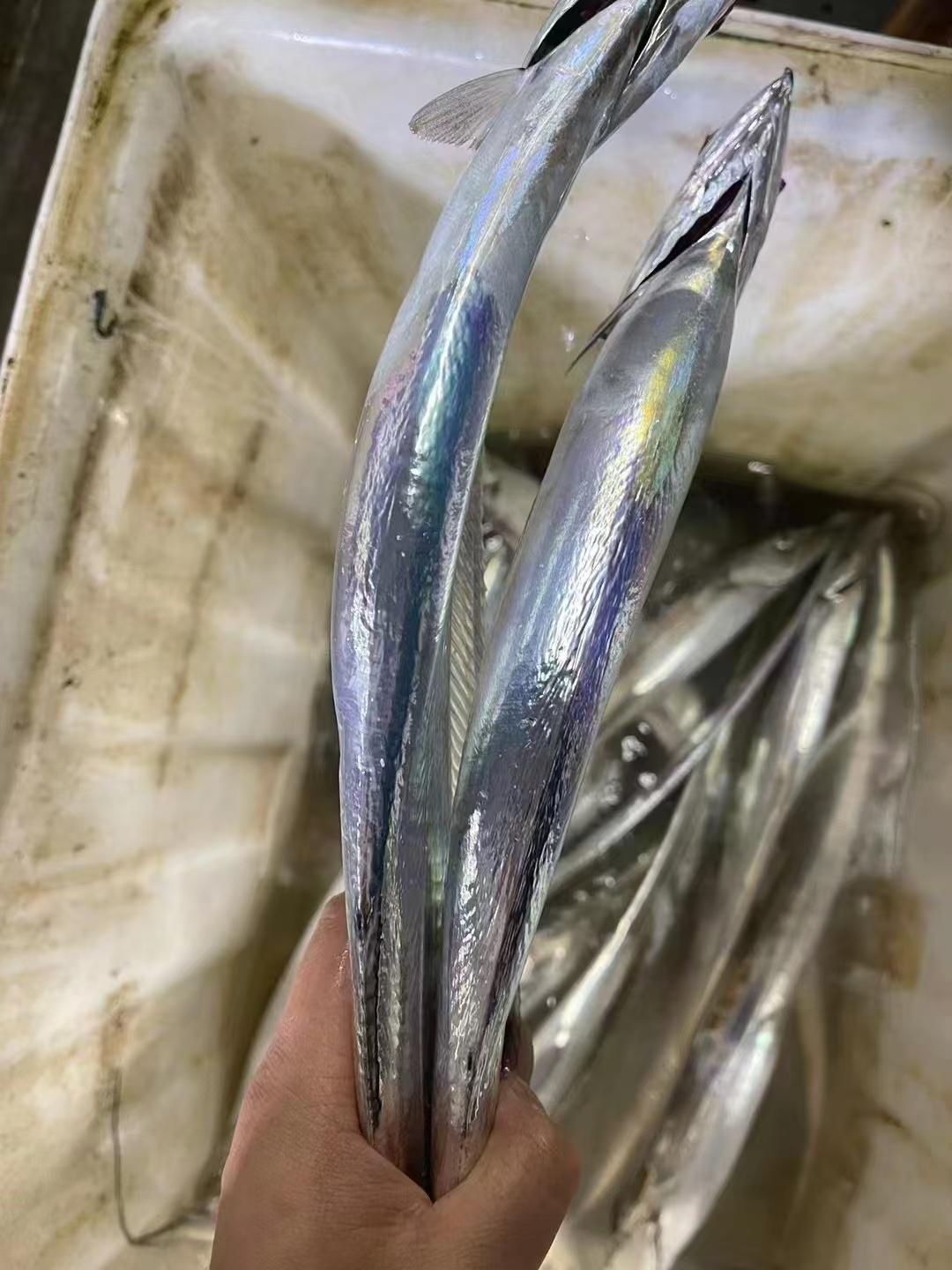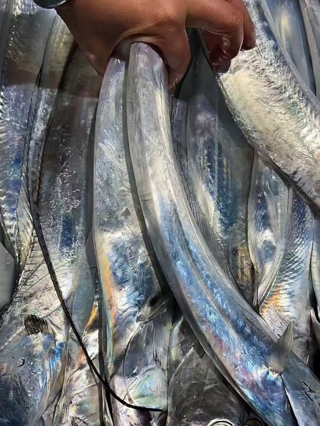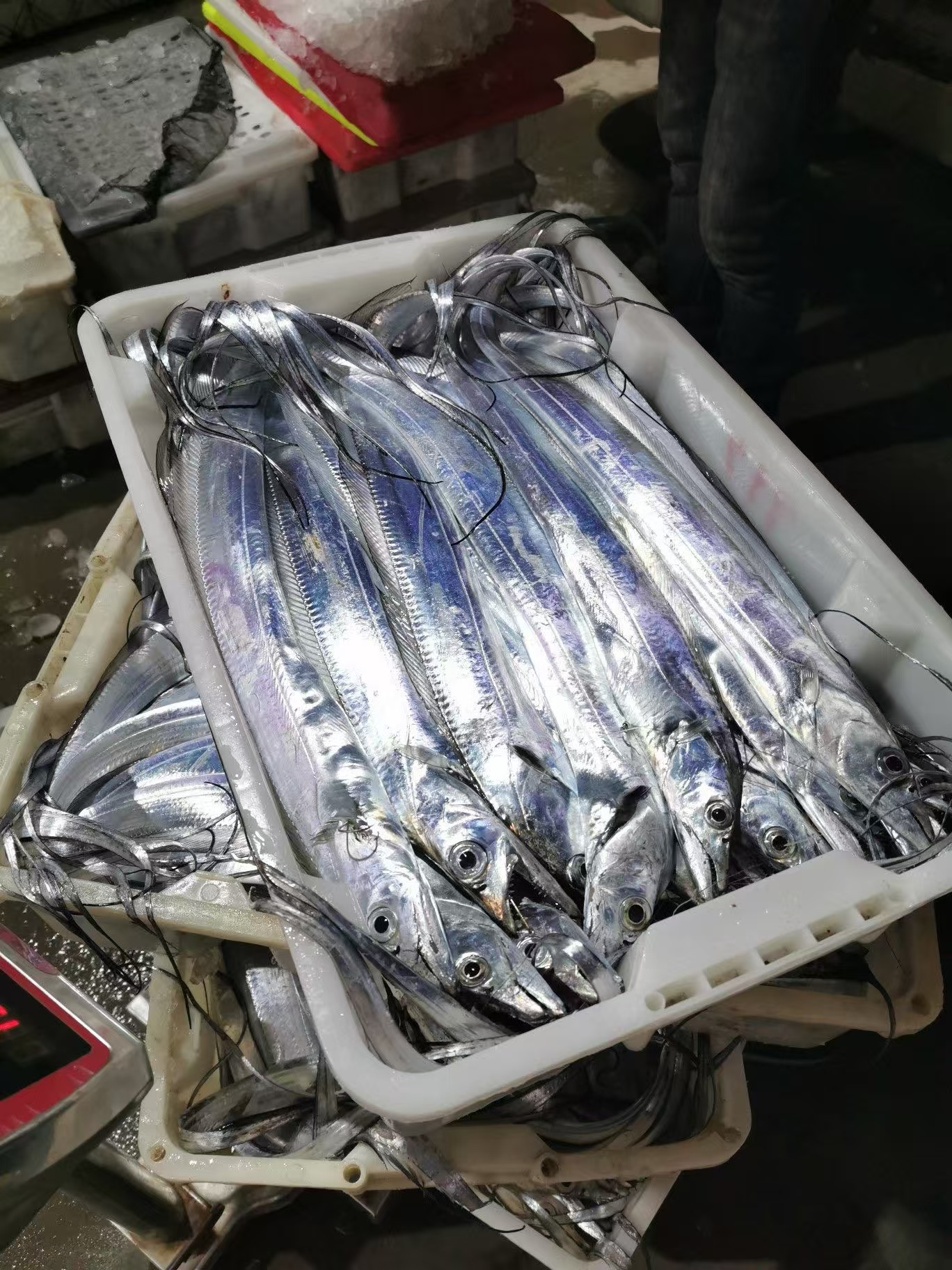 刚钓上来的带鱼鱼身闪亮如镜如刀